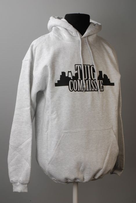 Trui, wit met grijs gemêleerd, met capuchon, lange m...
