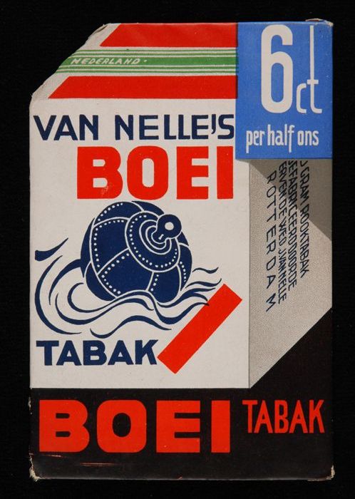 Klein reclamebord Van Nelle´s BOEI TABAK, met blauwe...