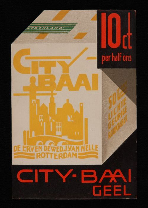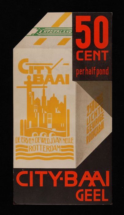 Reclamebord Van Nelle´s CITY BAAI, met geel silhouet...