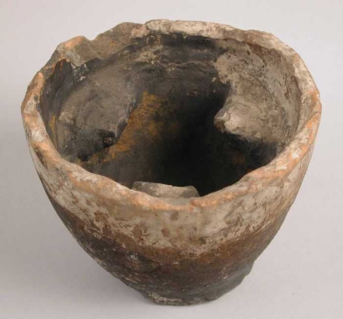 Voet van aardewerk pot uit de loodwitindustrie, drie...