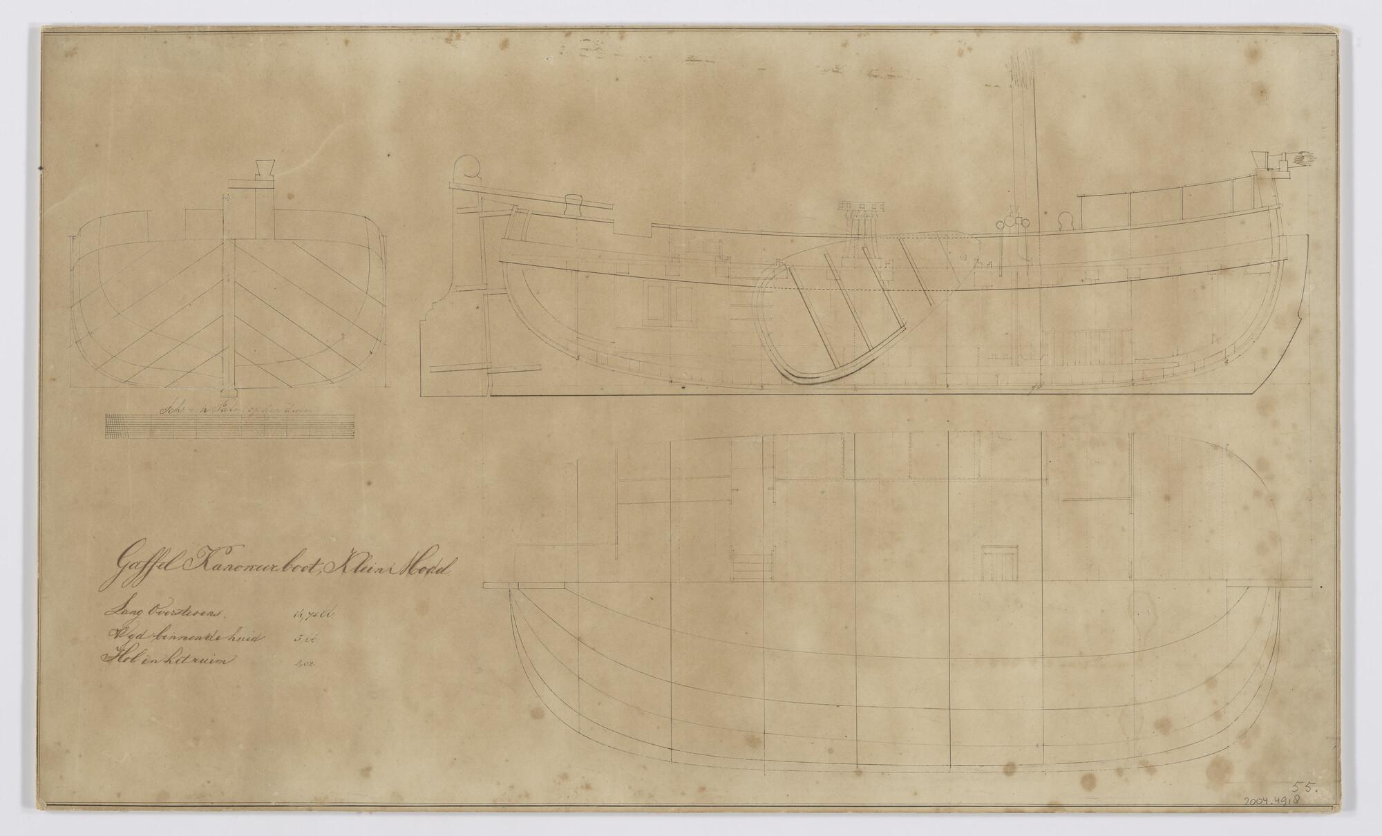 Algemeen- en lijnenplan van een klein model gaffelka...