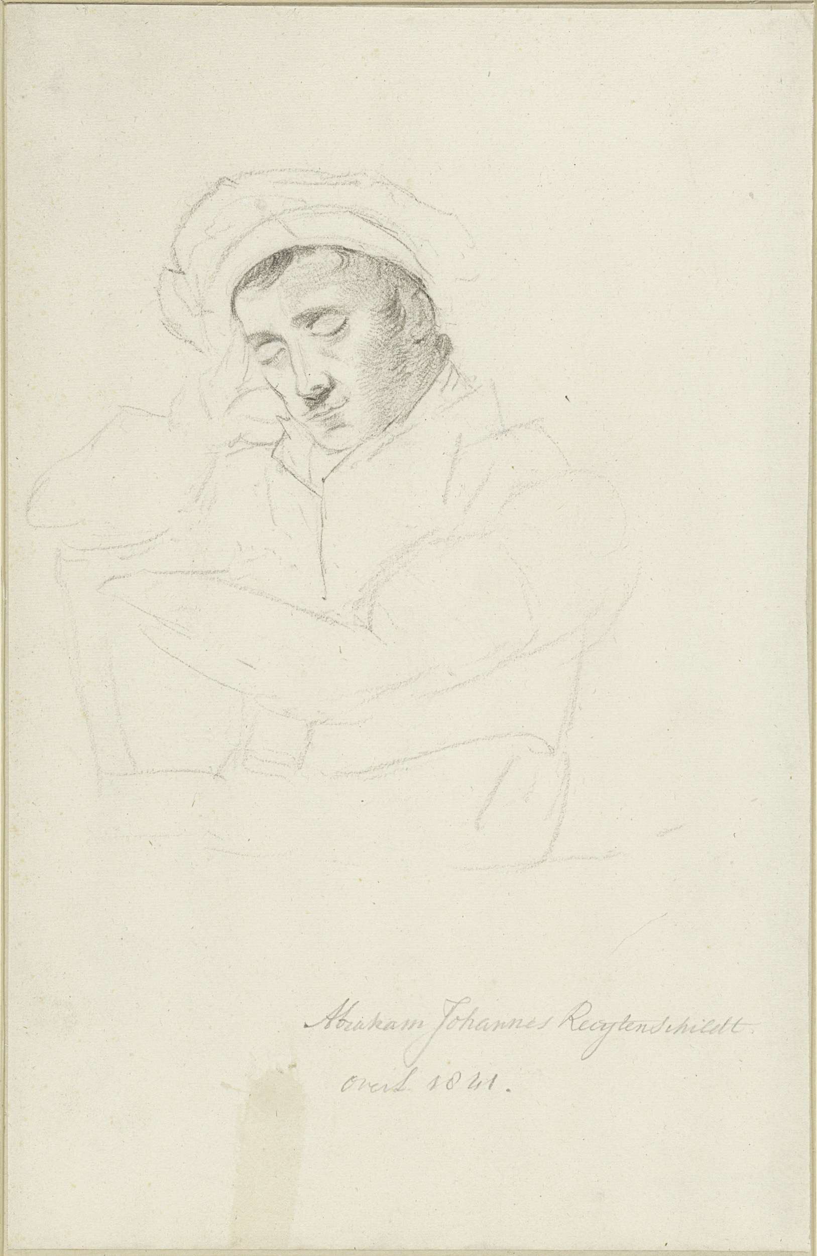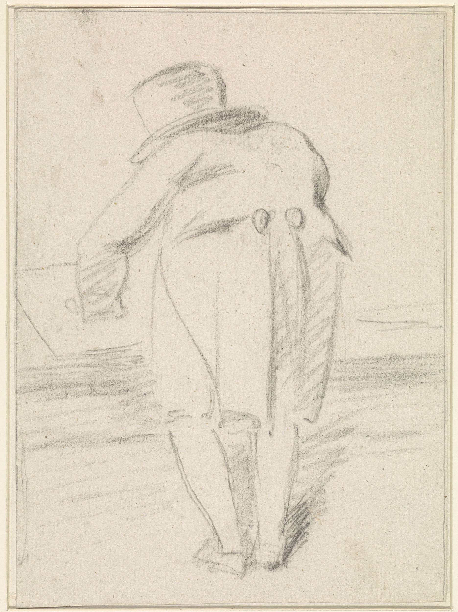 Staand mannelijk naakt, een arm opgeheven en de ande...