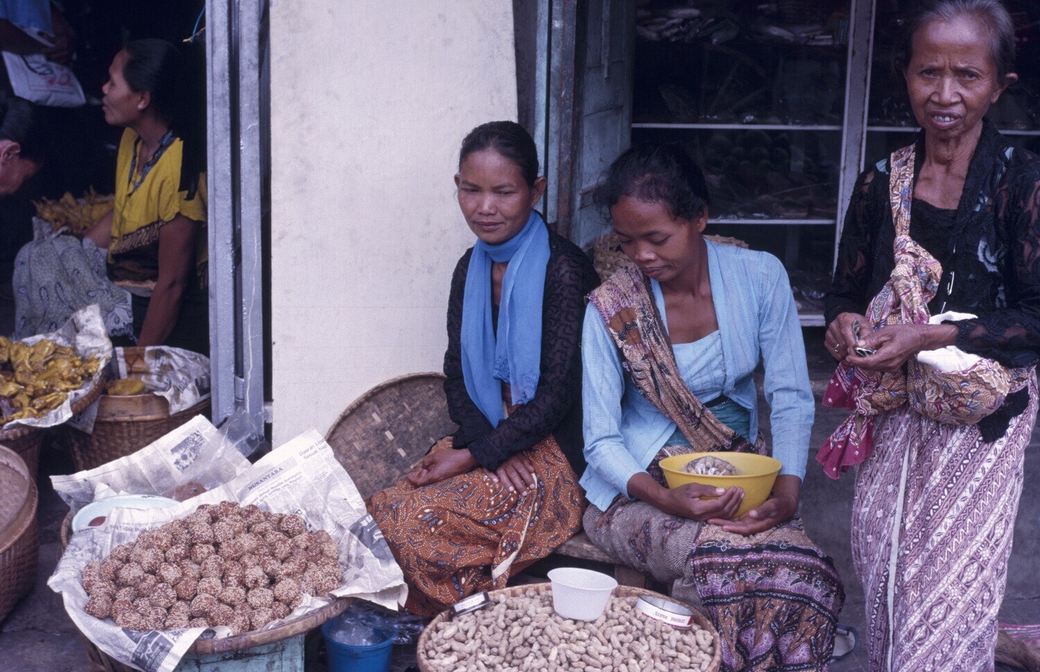 'Op de markt, Midden Java, verkoopsters van pinda's ...