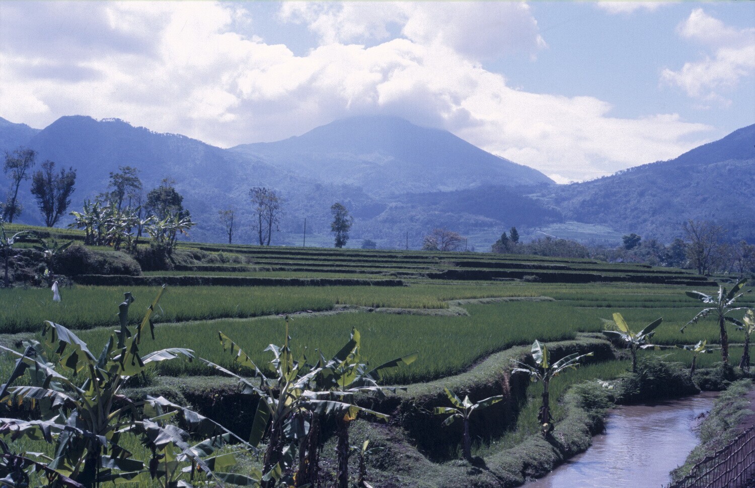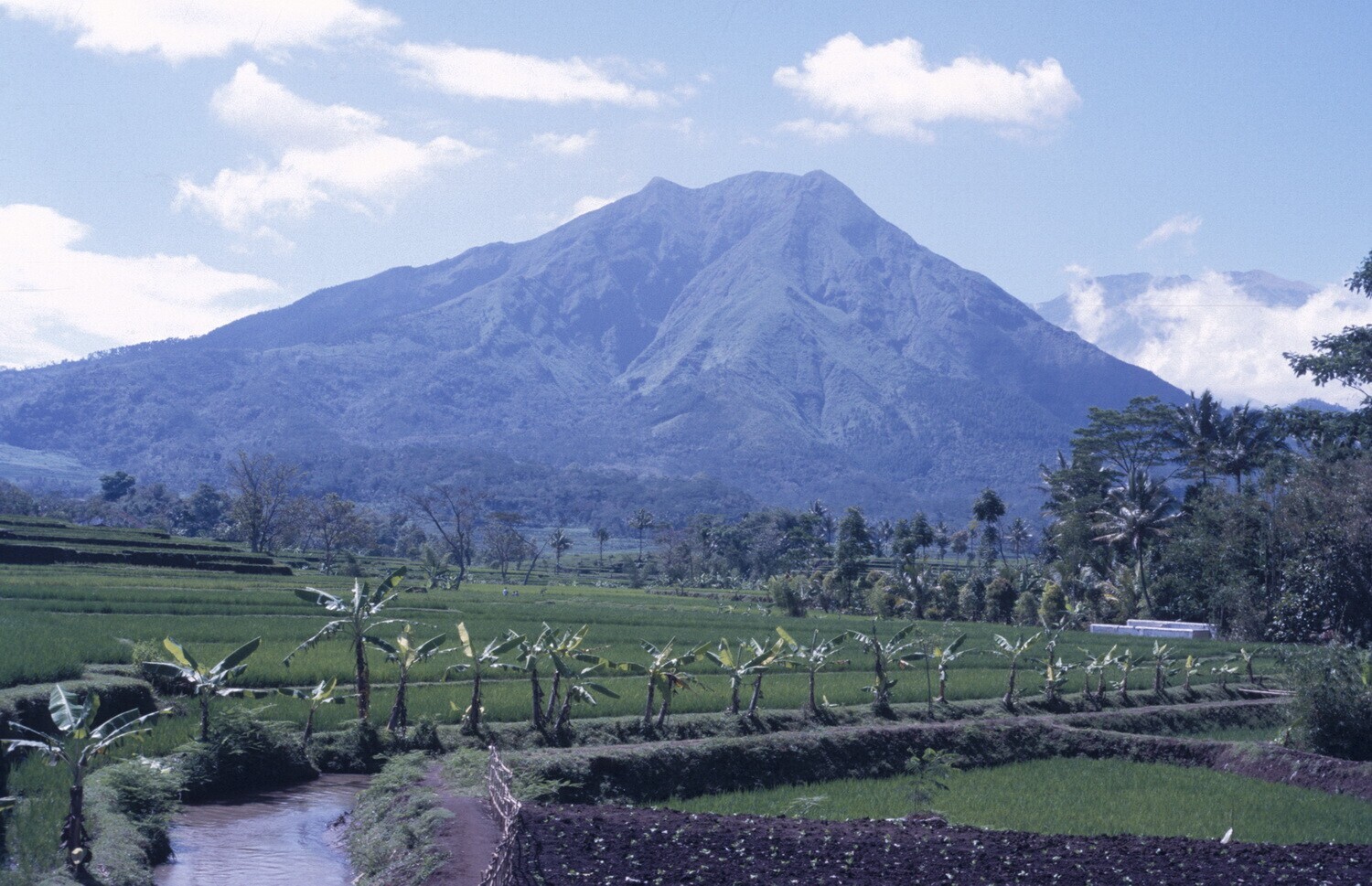 Midden Java. Landschap met de berg Soembing op de ac...