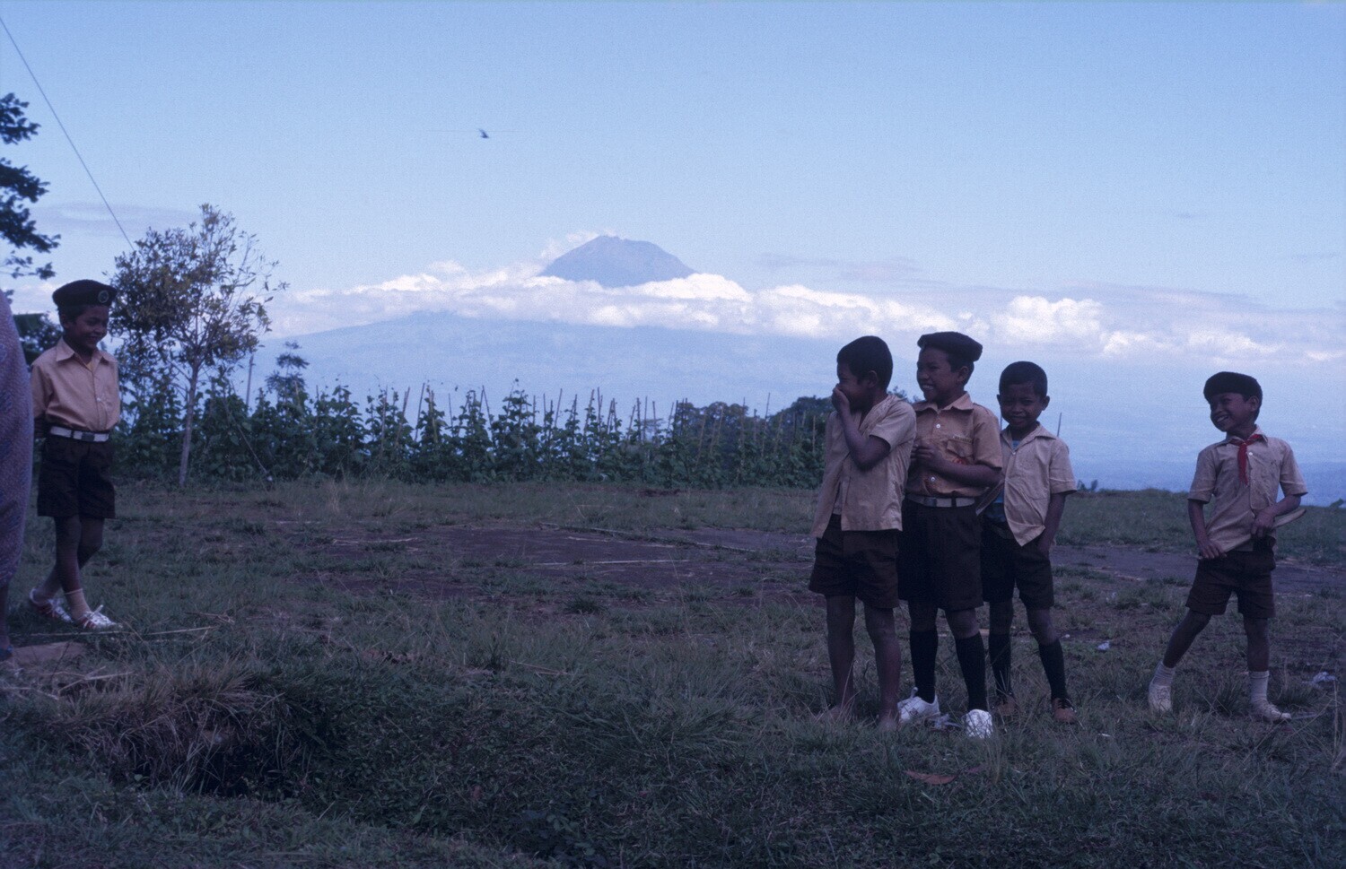 Midden Java. Schoolkinderen met op de achtergrond de...