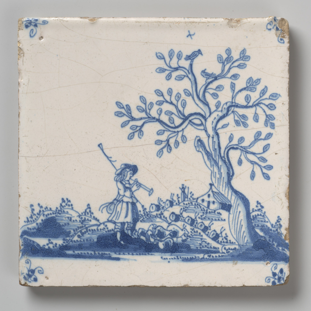 tegel van aardewerk met tinglazuur, voorstellende: h...