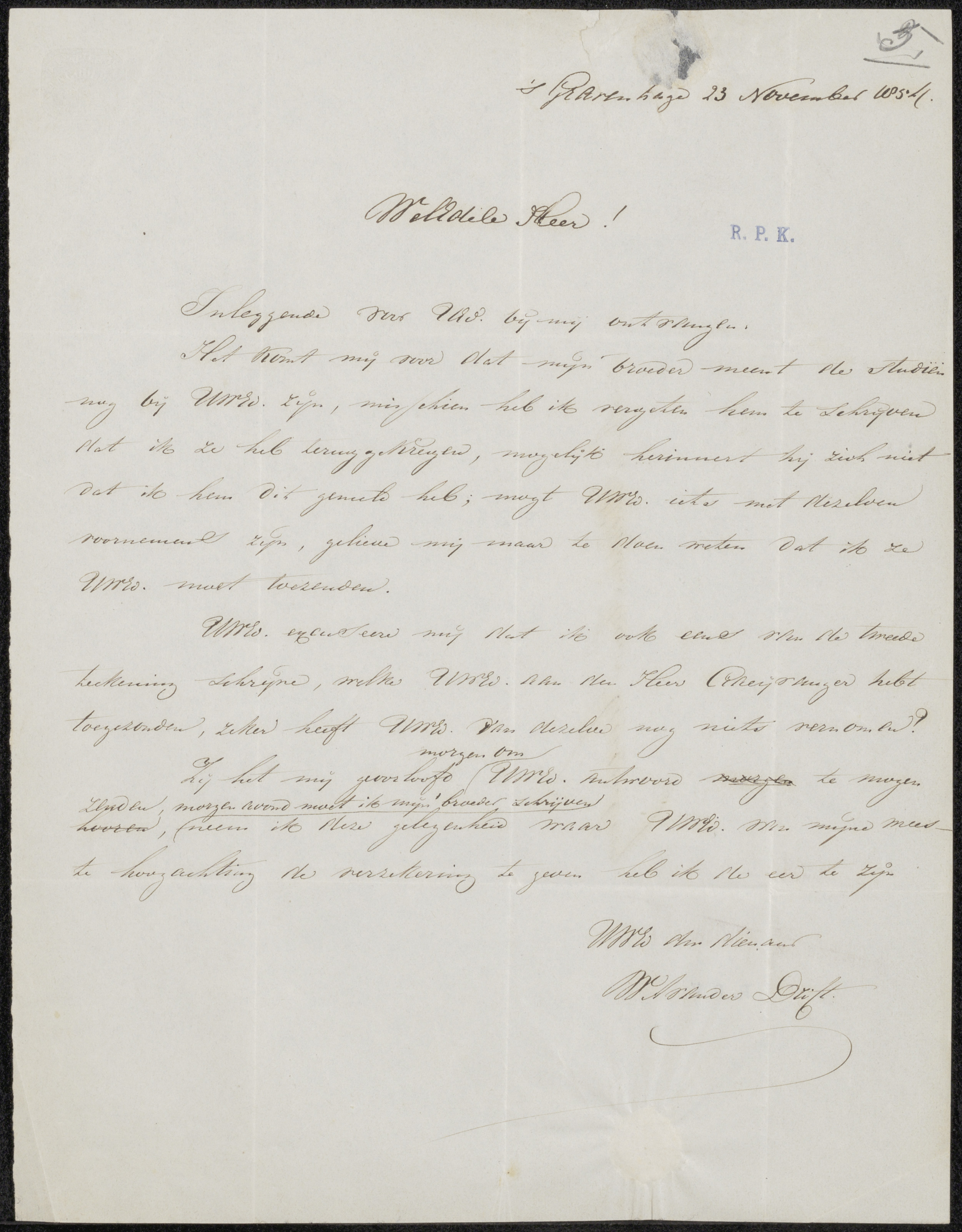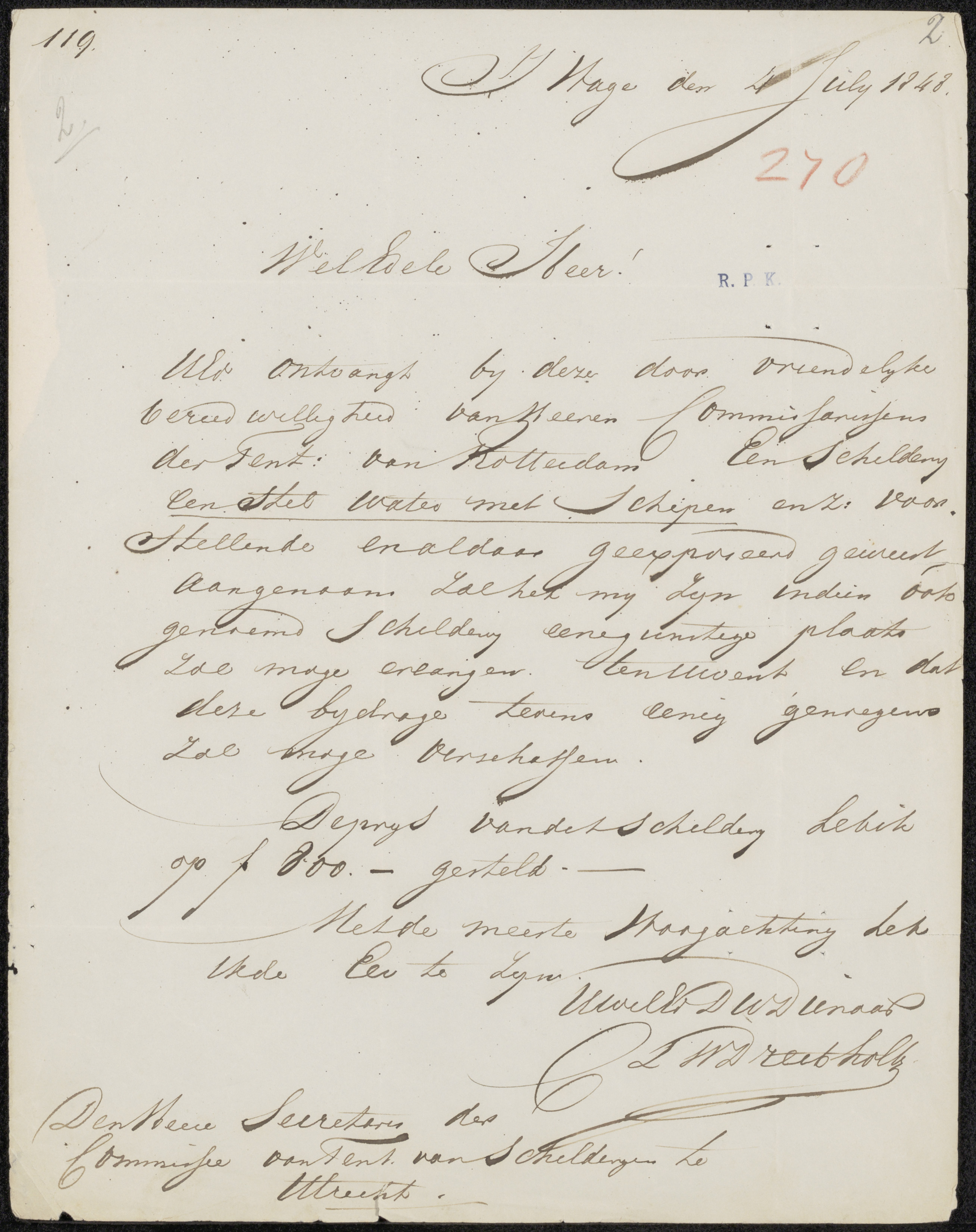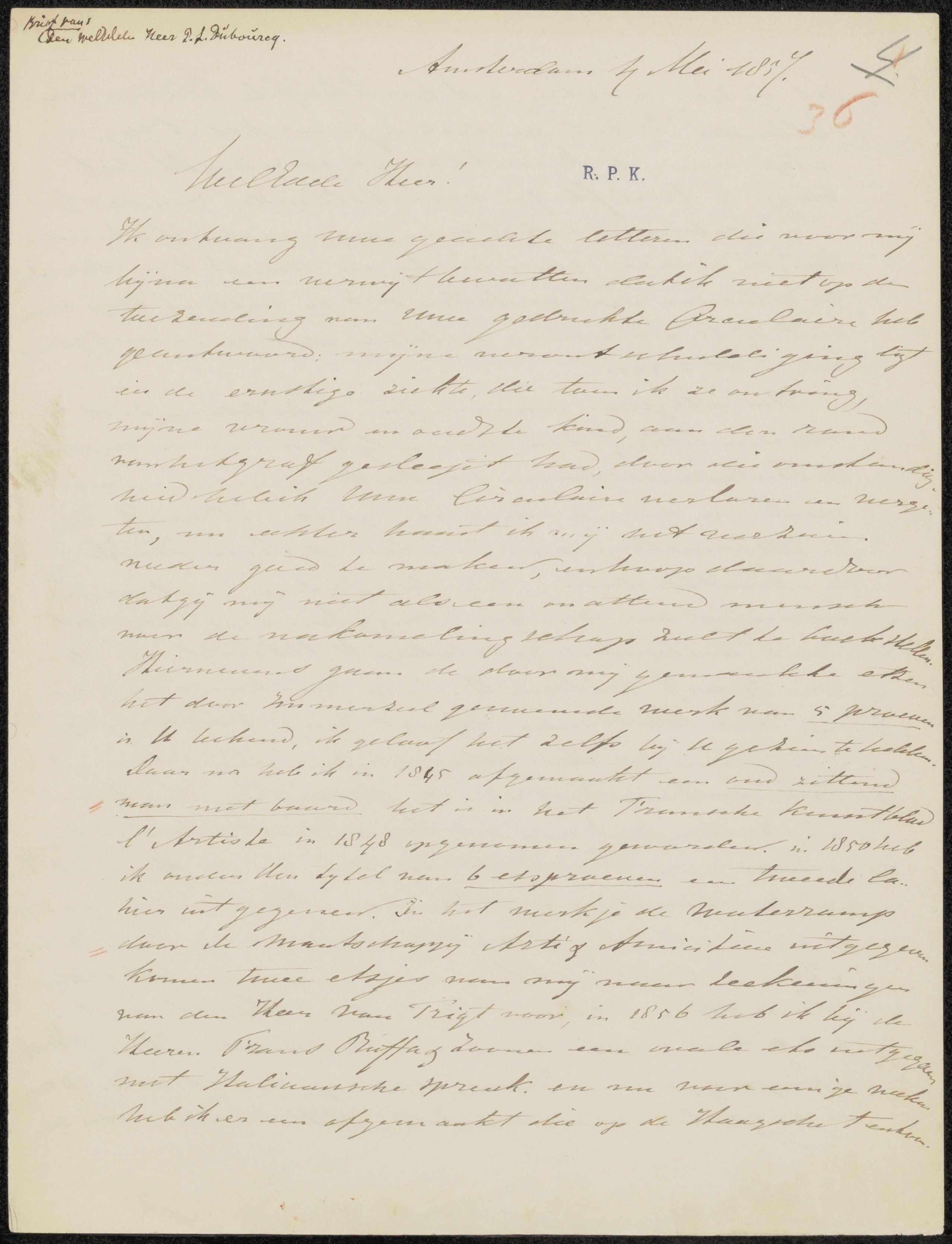 Brief aan G.M.C. Hooft, secretaris van de commissie ...