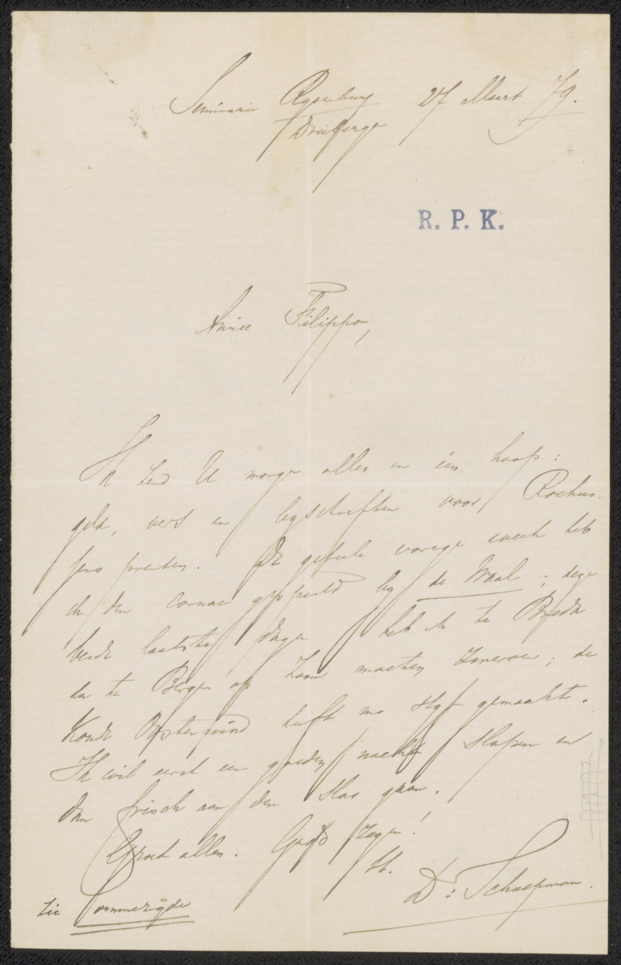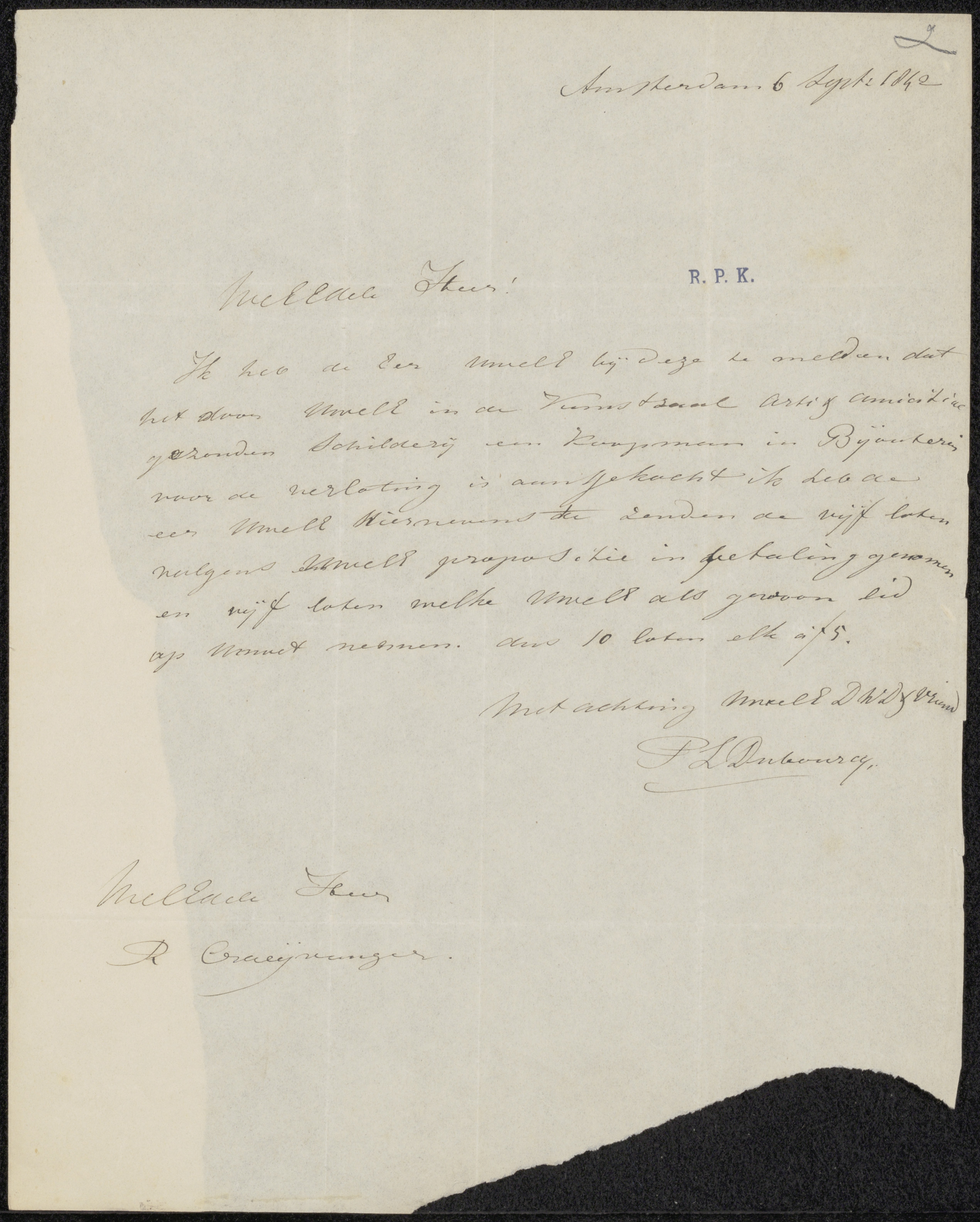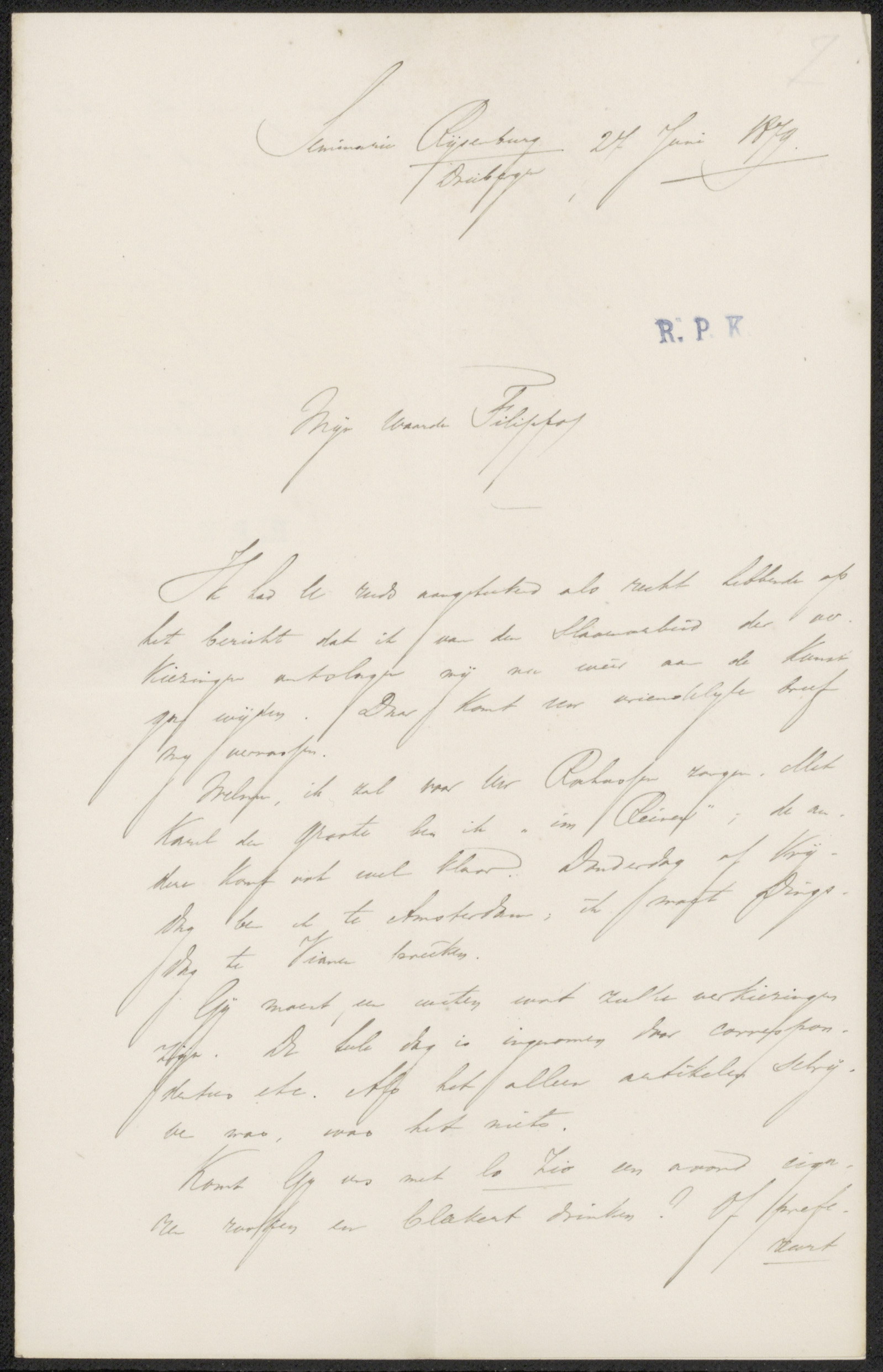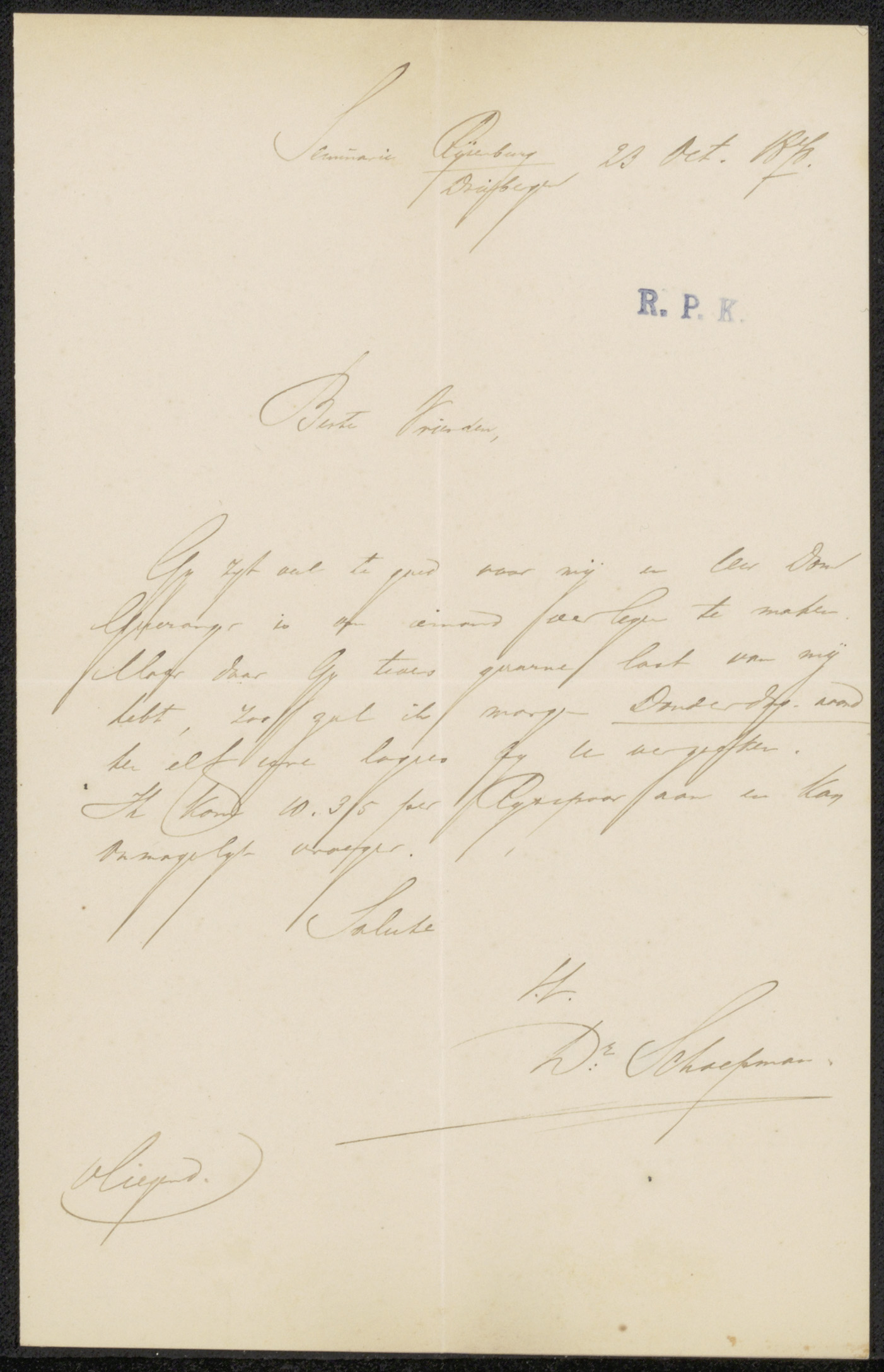 Brief aan G.M.C. Hooft, secretaris van de commissie ...