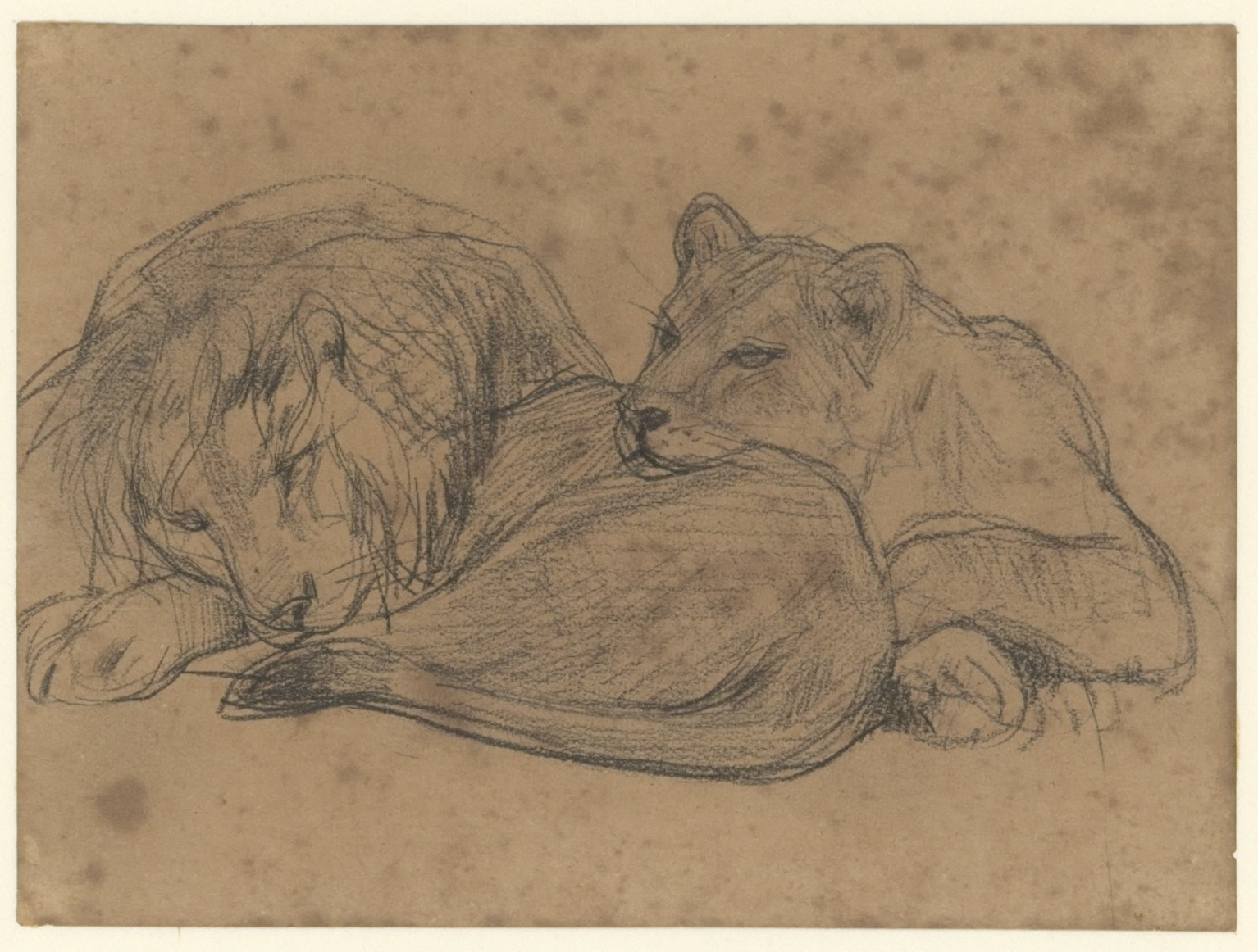 Twee liggende leeuwinnen (recto) : studie van leeuwi...