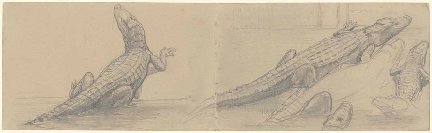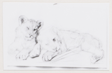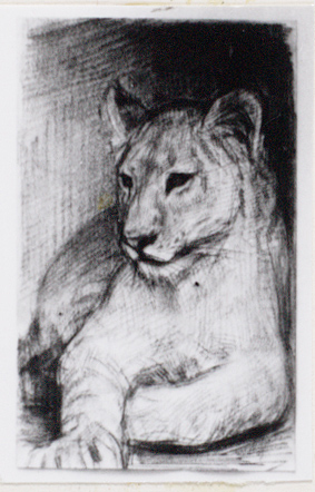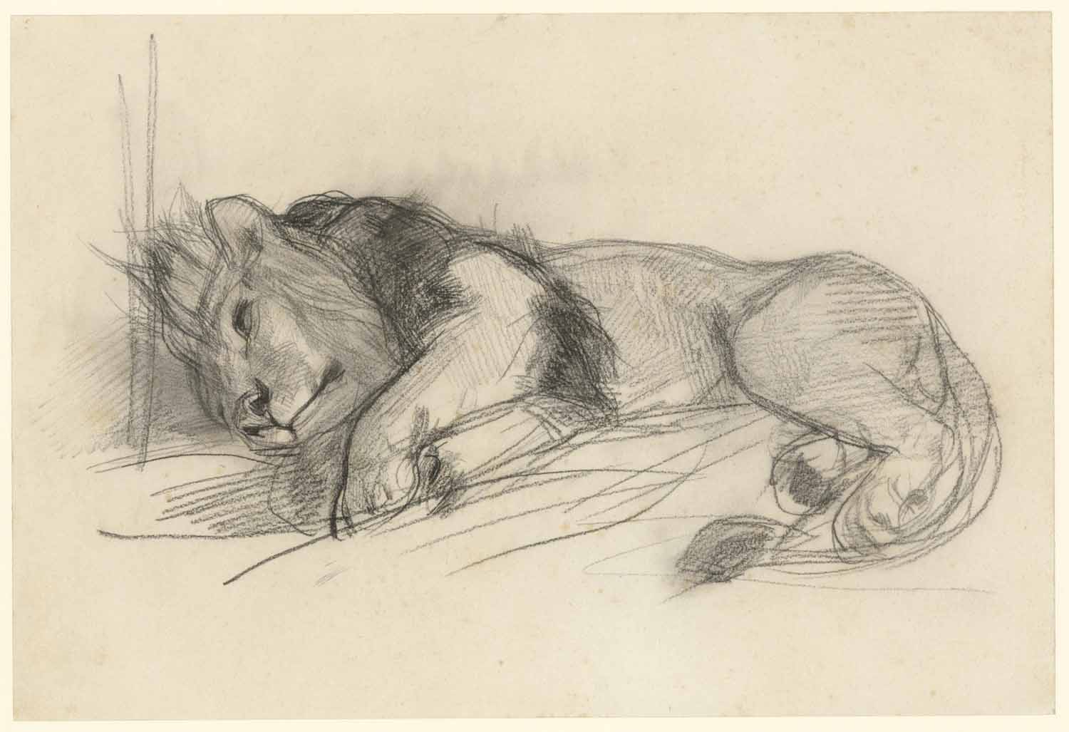 Liggende leeuwin (recto) dierstudie uit de serie: "n...