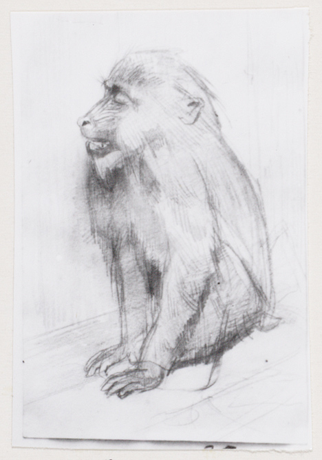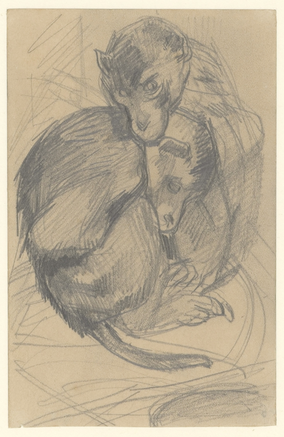 Zittende aap (recto) : dierstudie (verso) uit de ser...