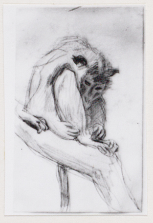 Zittende aap op boom (recto) : dierstudie (verso) (?...