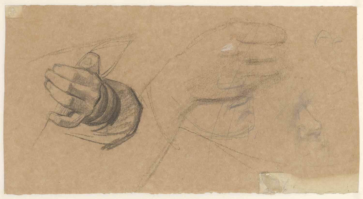 Hoofd van een leeuw (recto) : krabbel (verso) uit de...