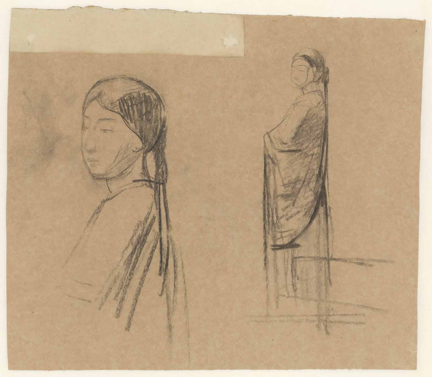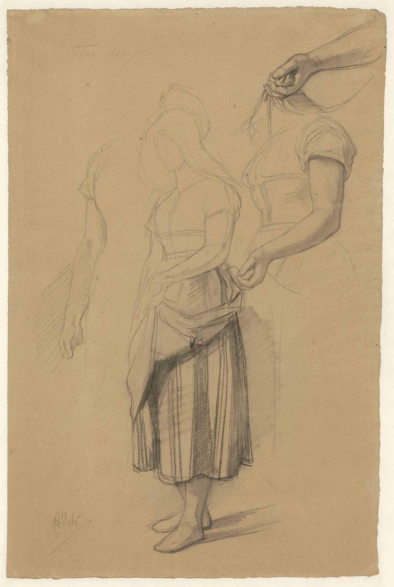 Studie van vrouwenfiguur en buste. Studie van een ar...