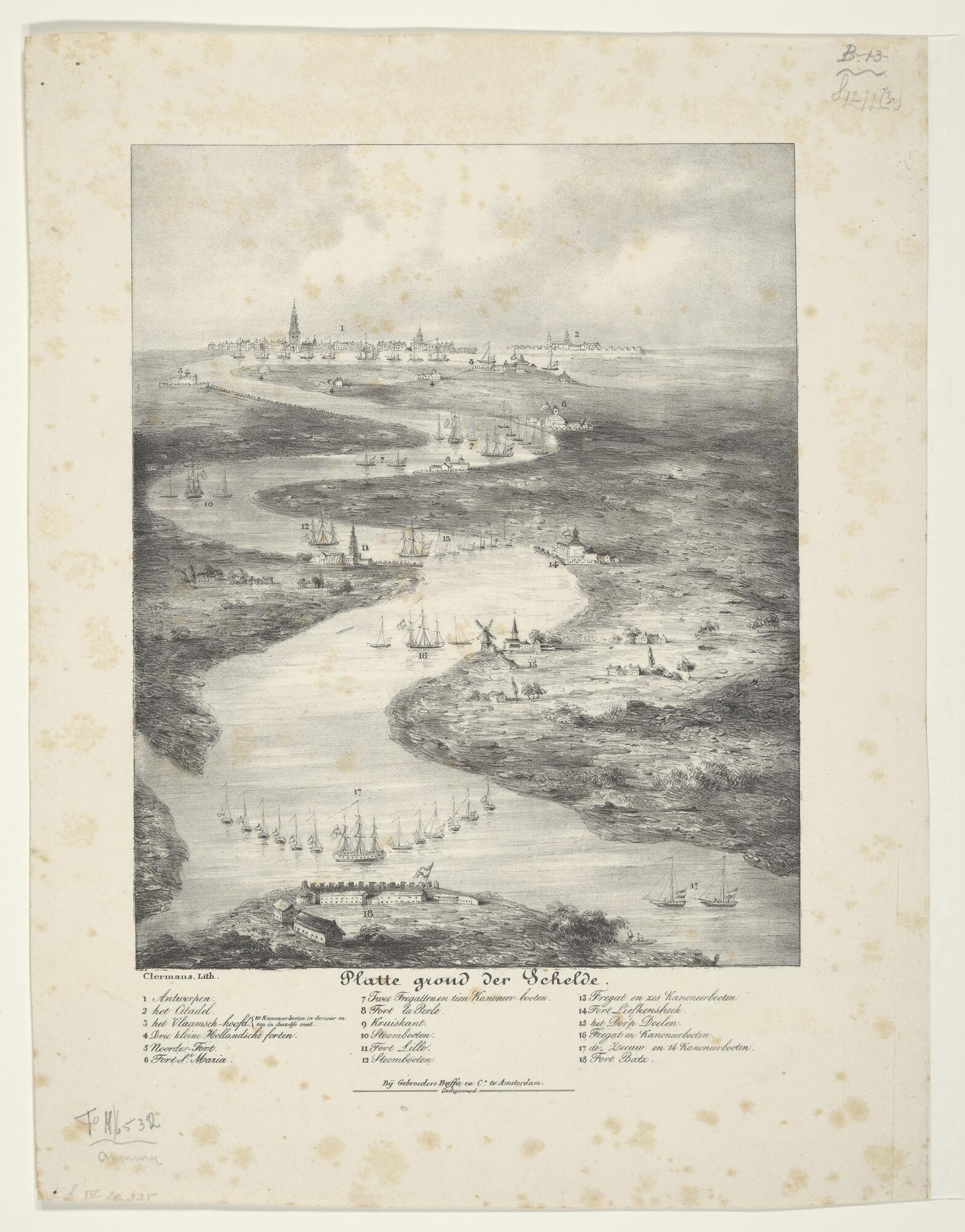 Kaart van de Schelde vanaf Antwerpen tot het dorp Doel