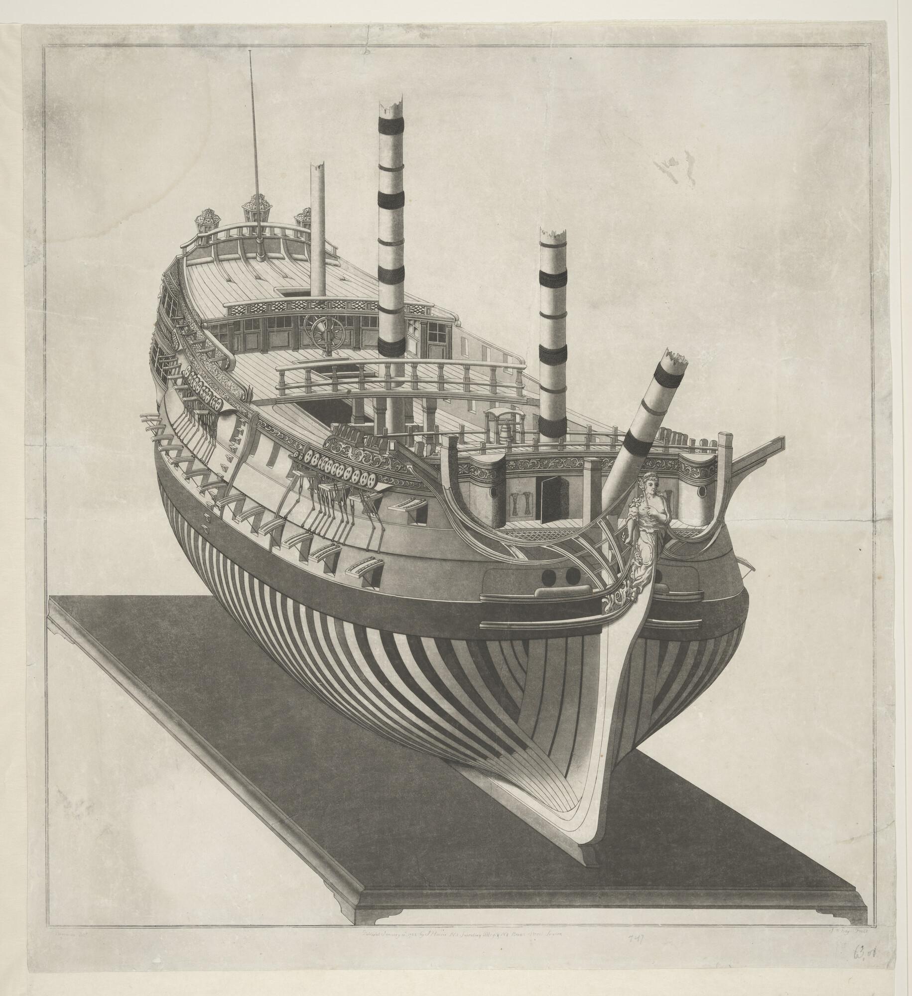 Een model van een Engels oorlogsschip, stuurboord ac...