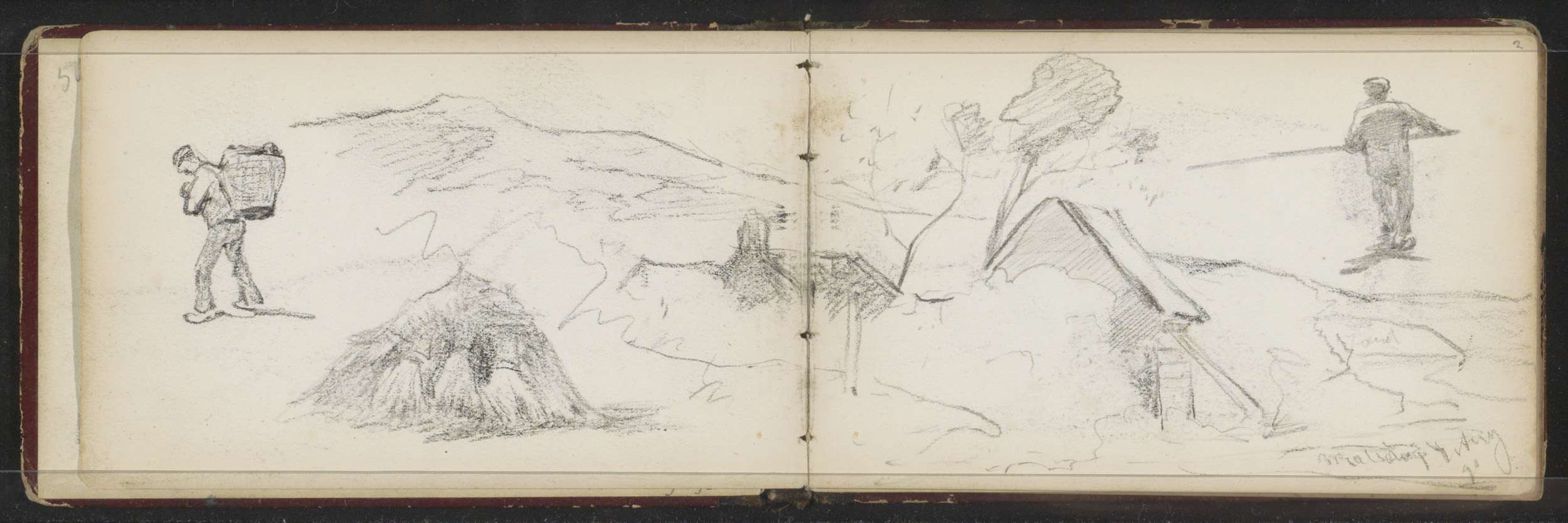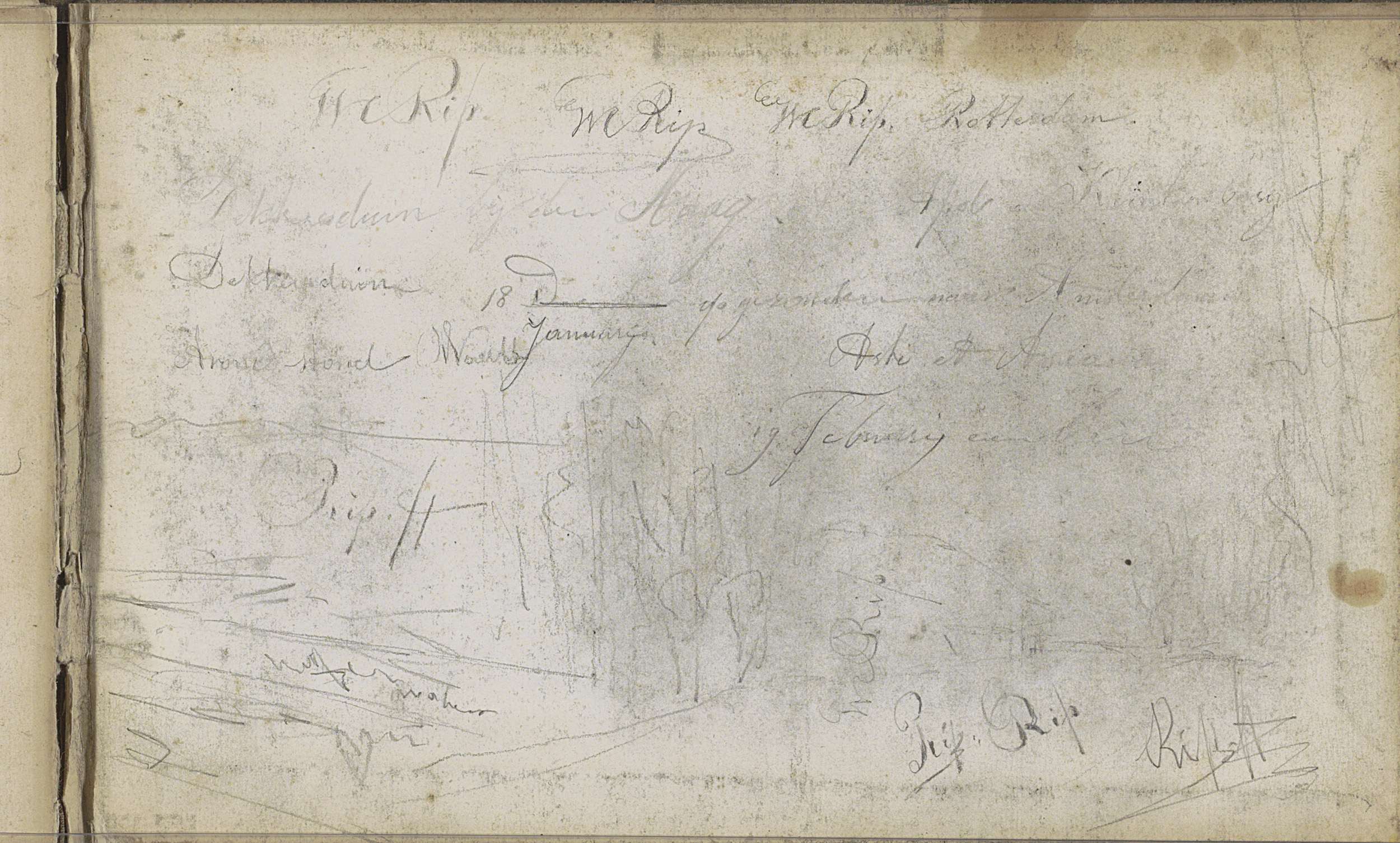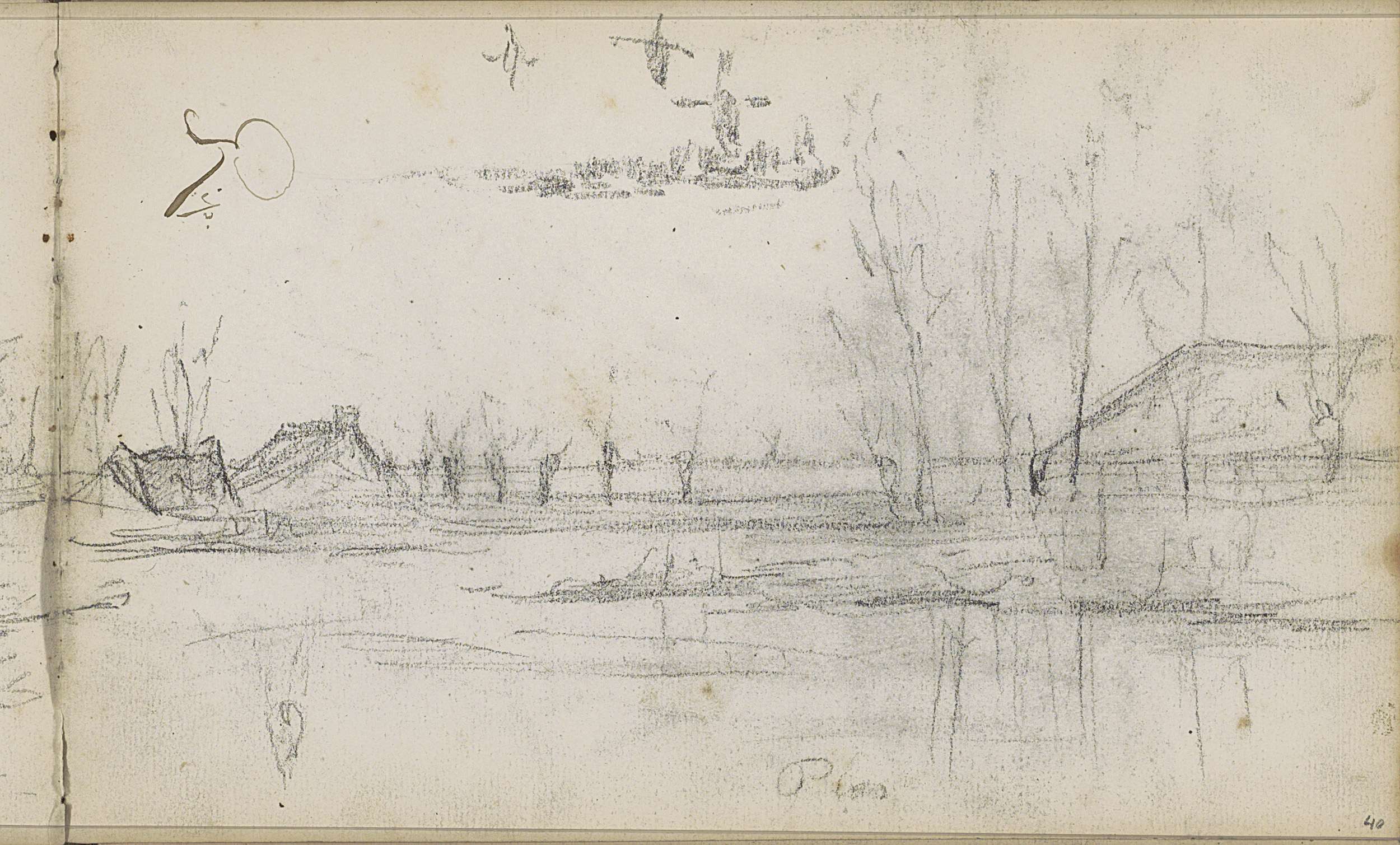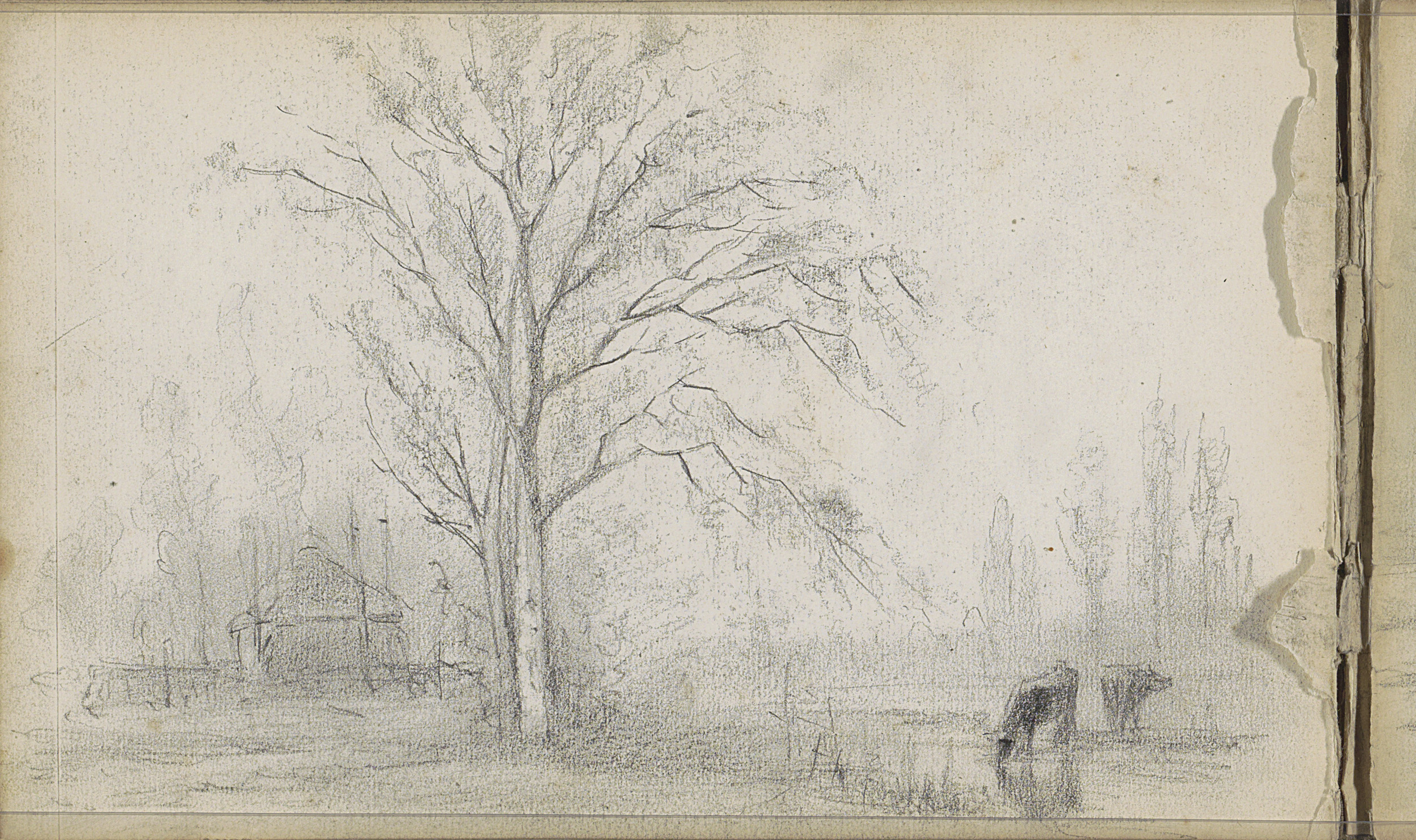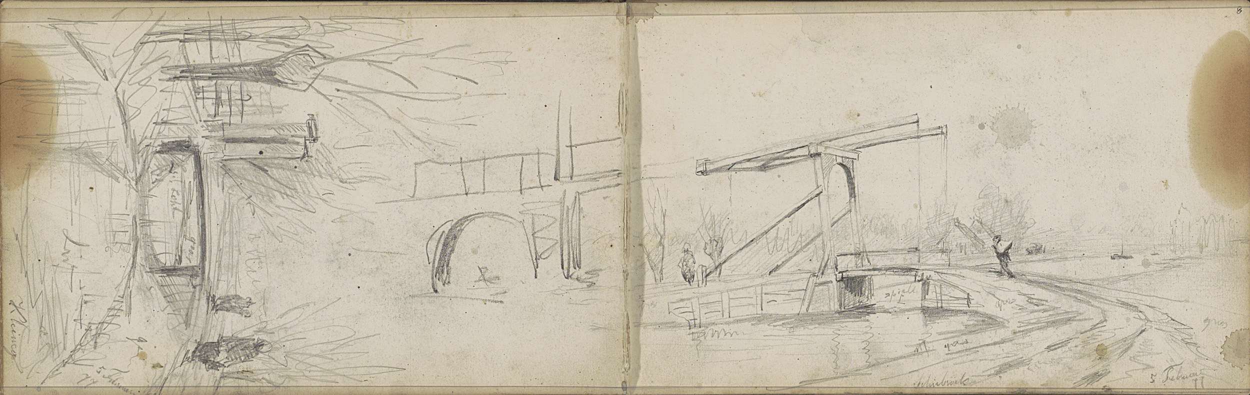 Studieblad, onder andere met een ophaalbrug bij Schi...