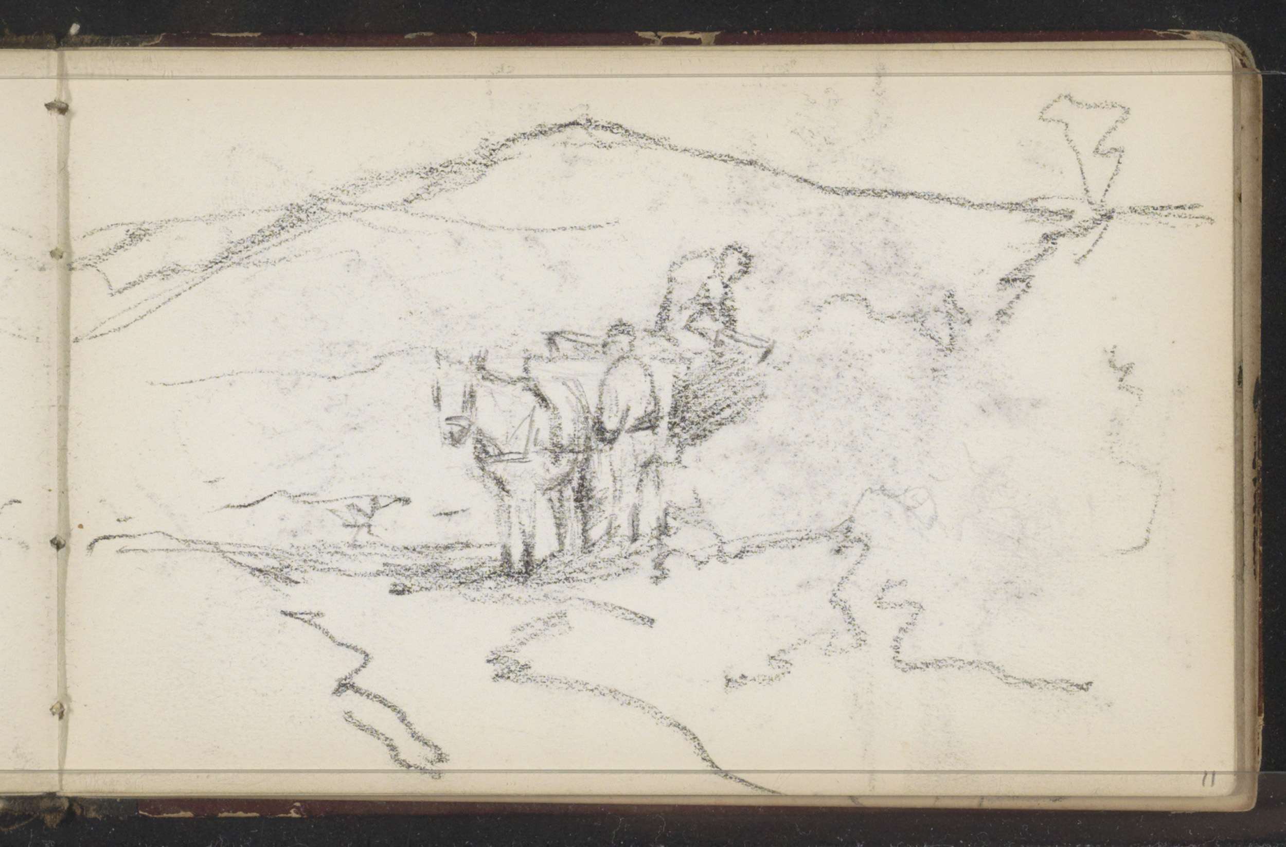 Heuvellandschap met figuren bij een paardenkar