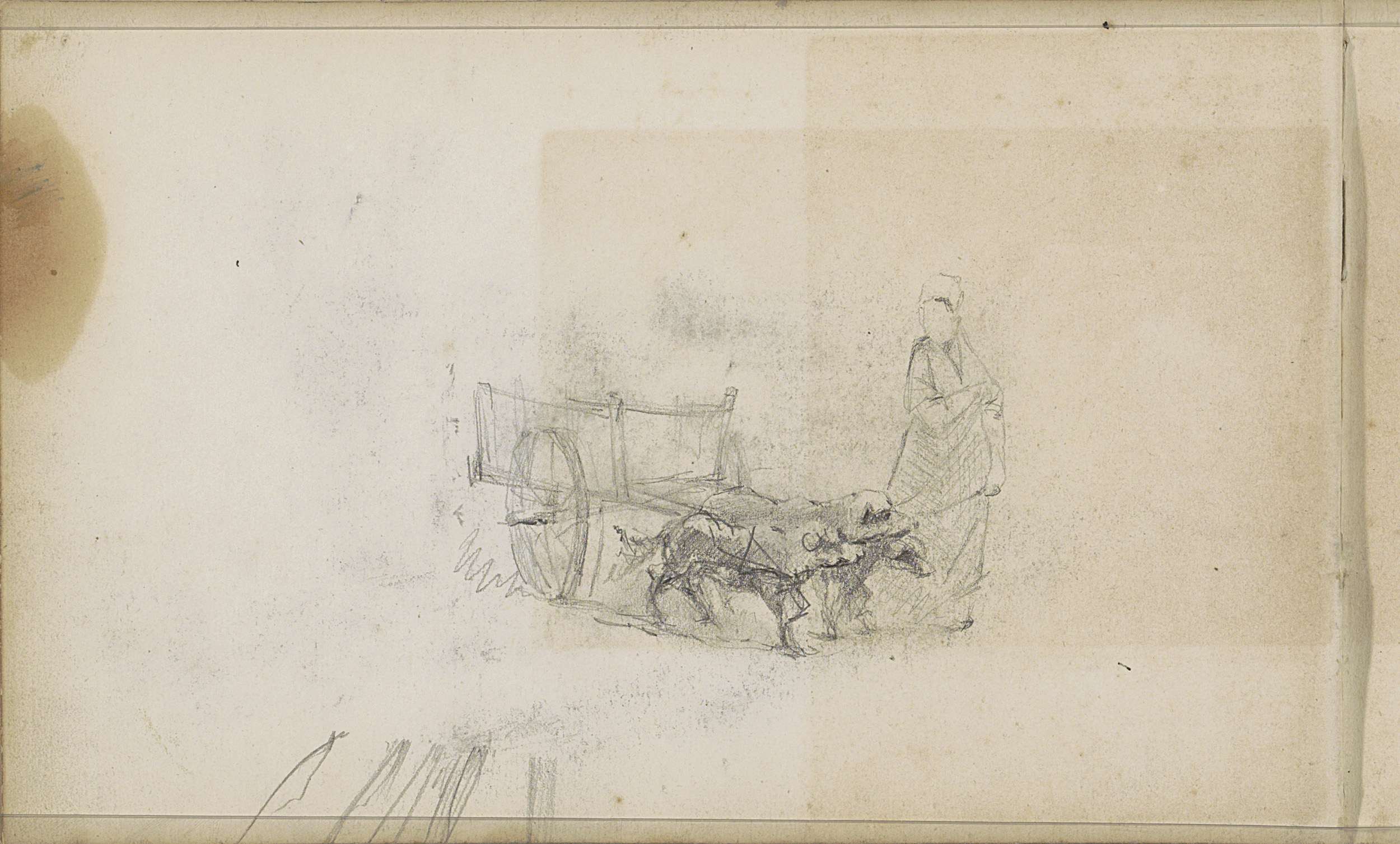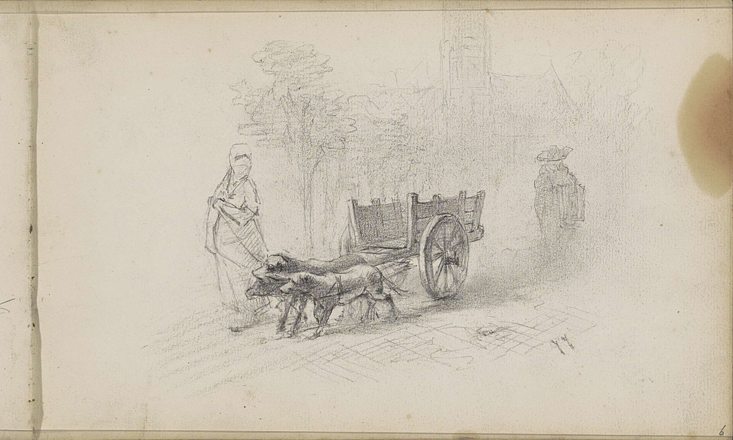Gesluierde figuur met een hondenkar