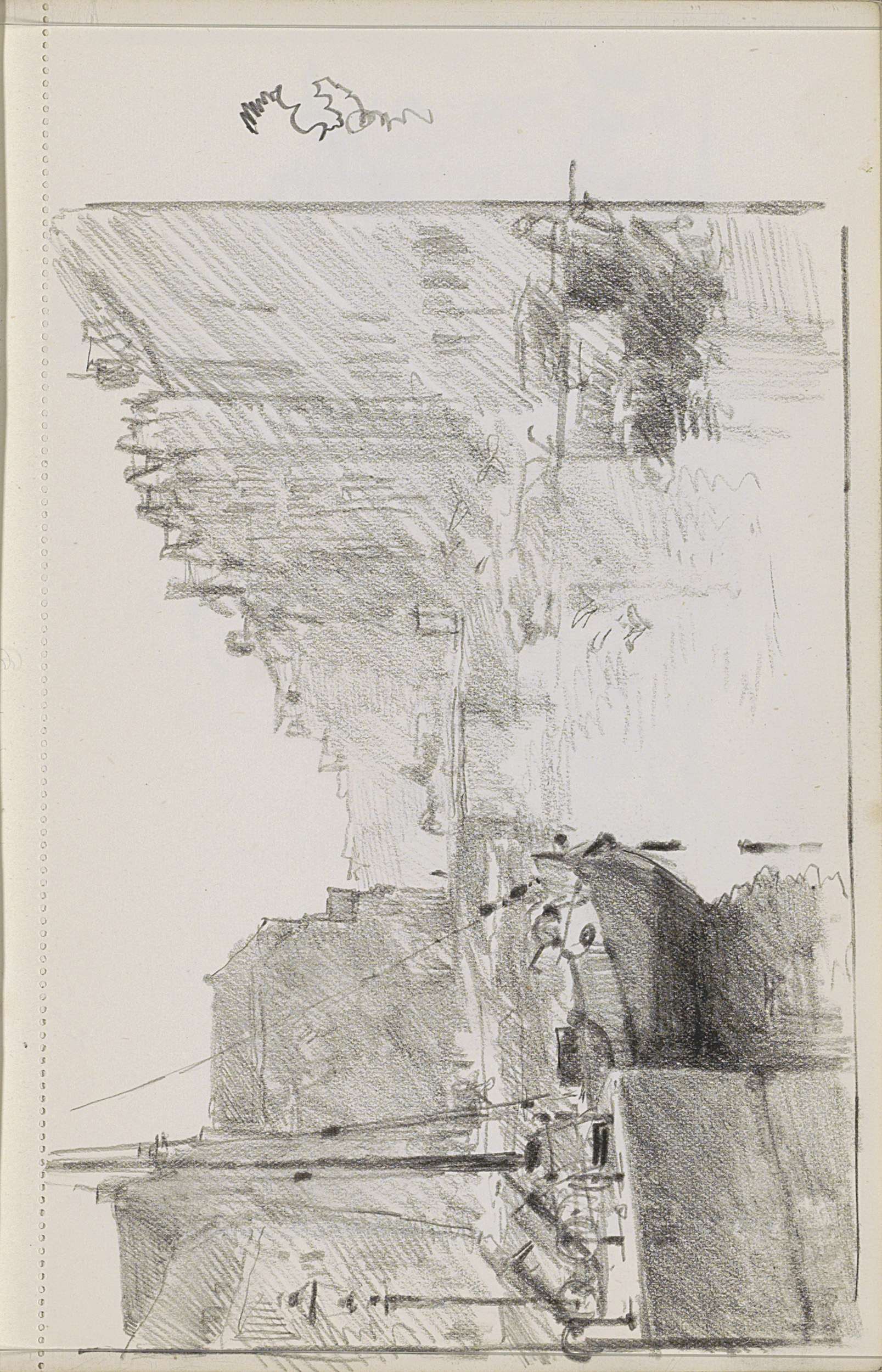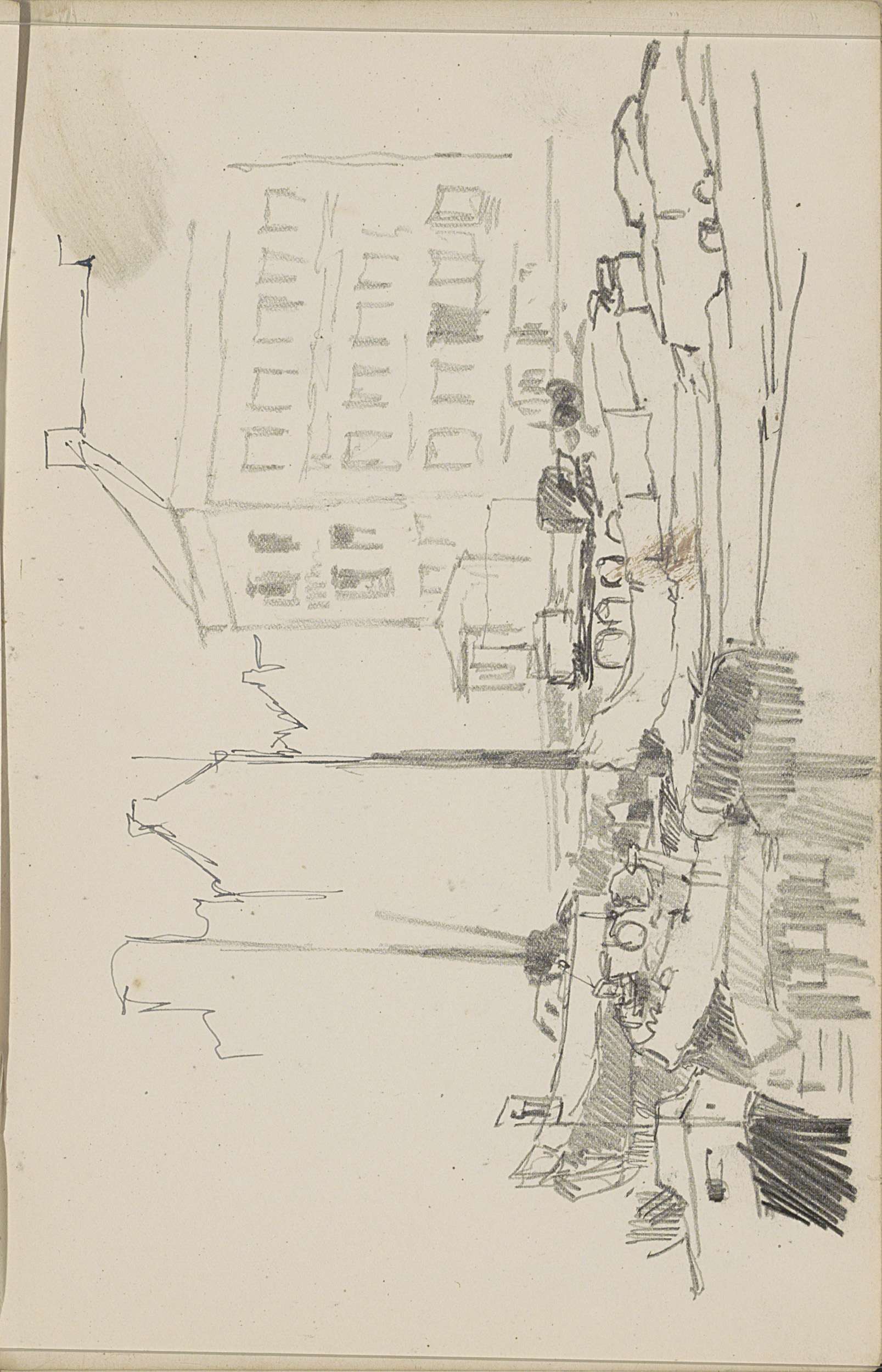 Aangemeerde boot bij de Prins Hendrikkade te Amsterdam