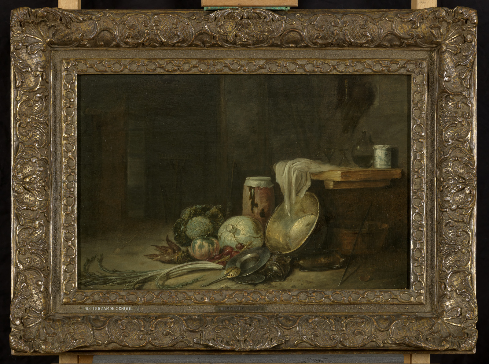 Stilleven met beeldje van Cupido, vaas met bloemen e...