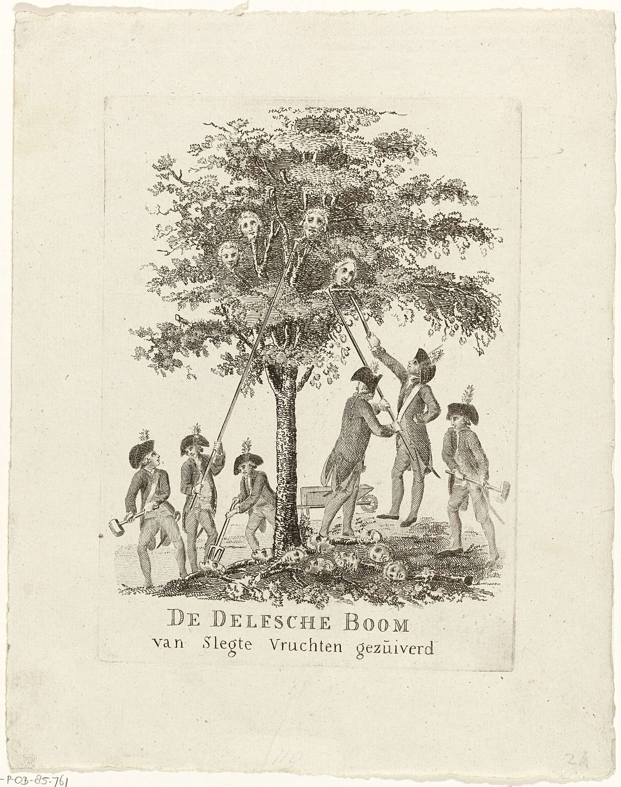 Spotprent op de pogingen de Oranjeboom omver te trek...