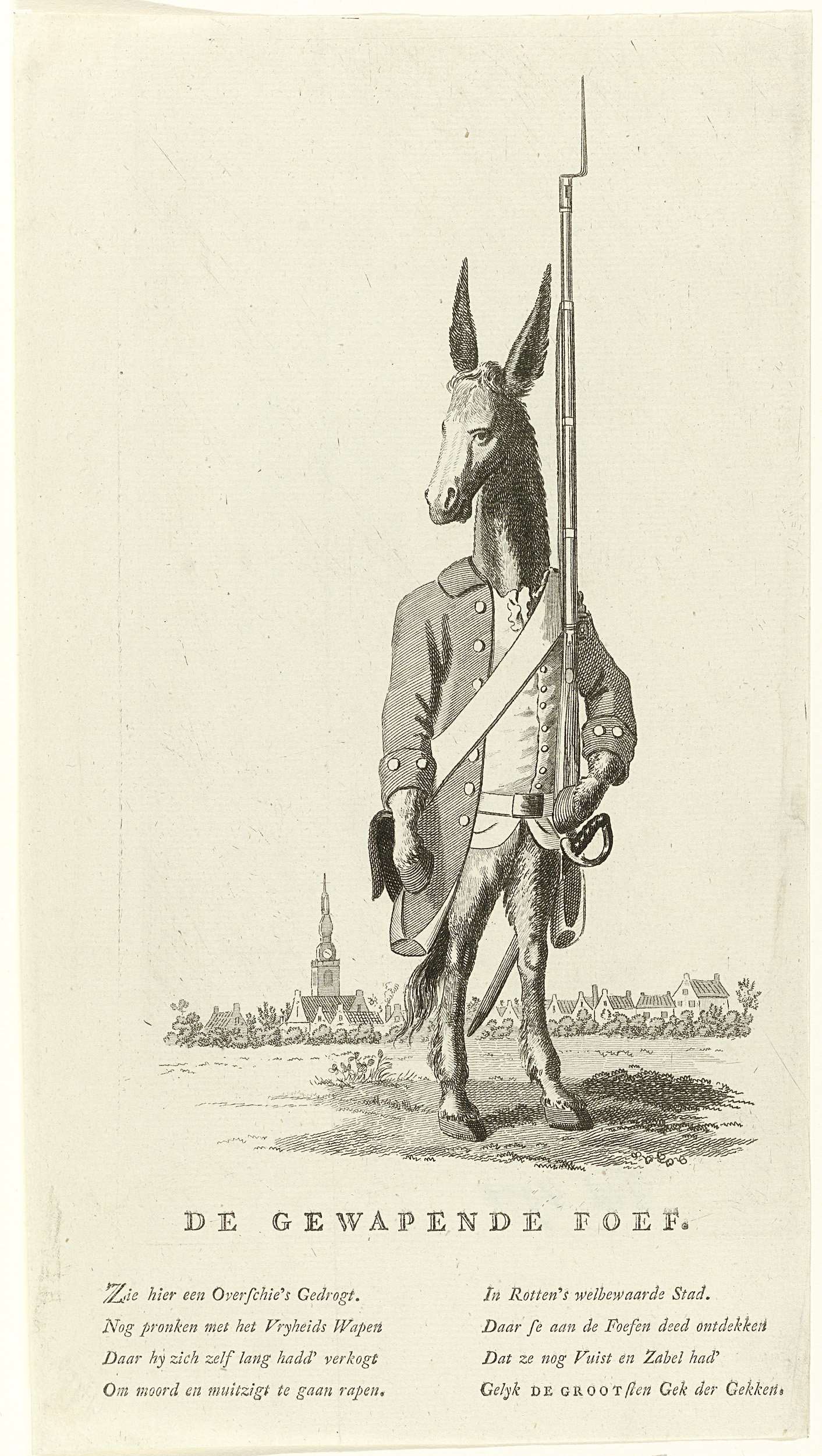 Openslaande spotprent op een vrijkorpist van het Vli...