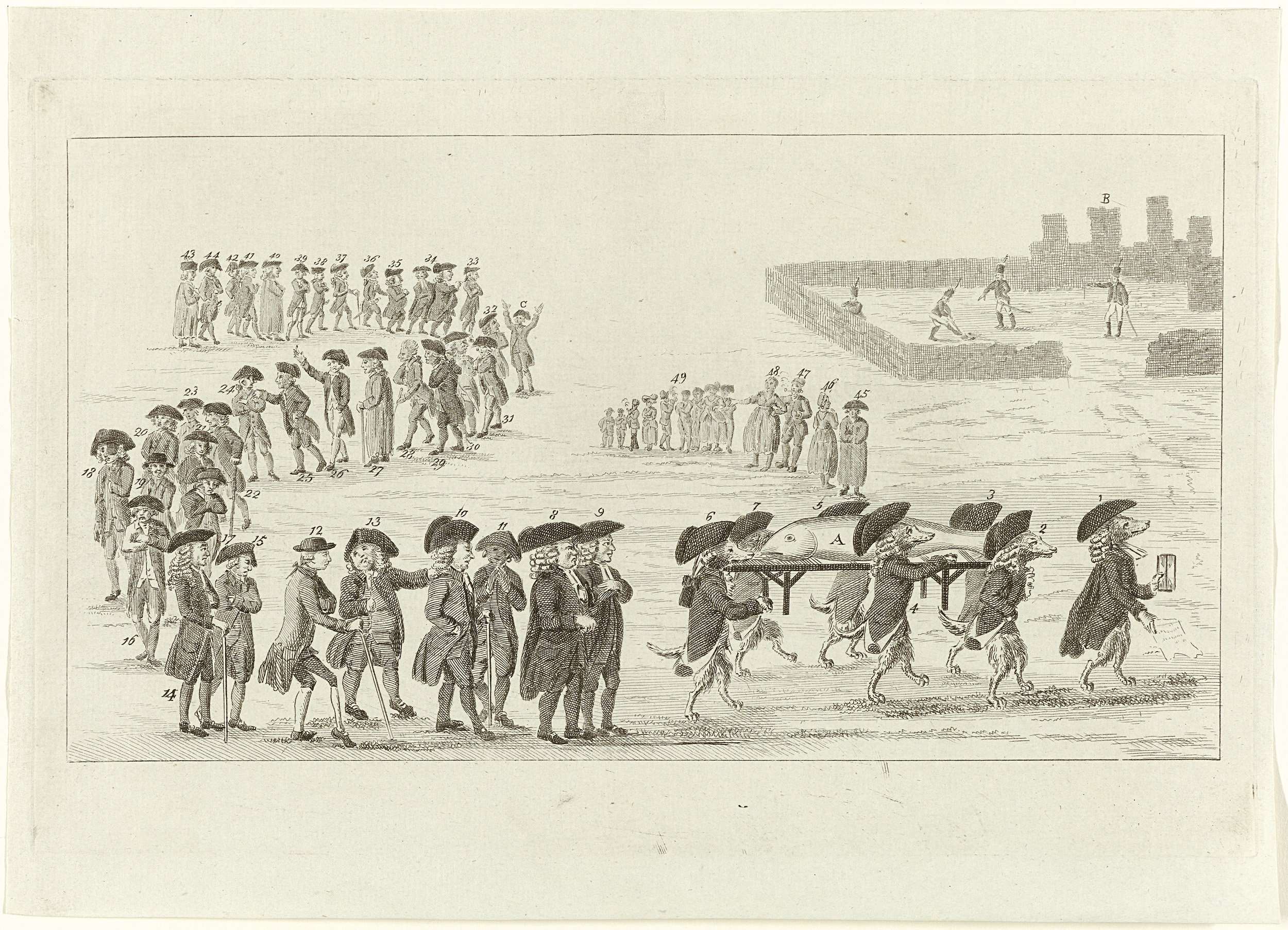 Spotprent op de uitgetrokken Amsterdamse burgers, 1787