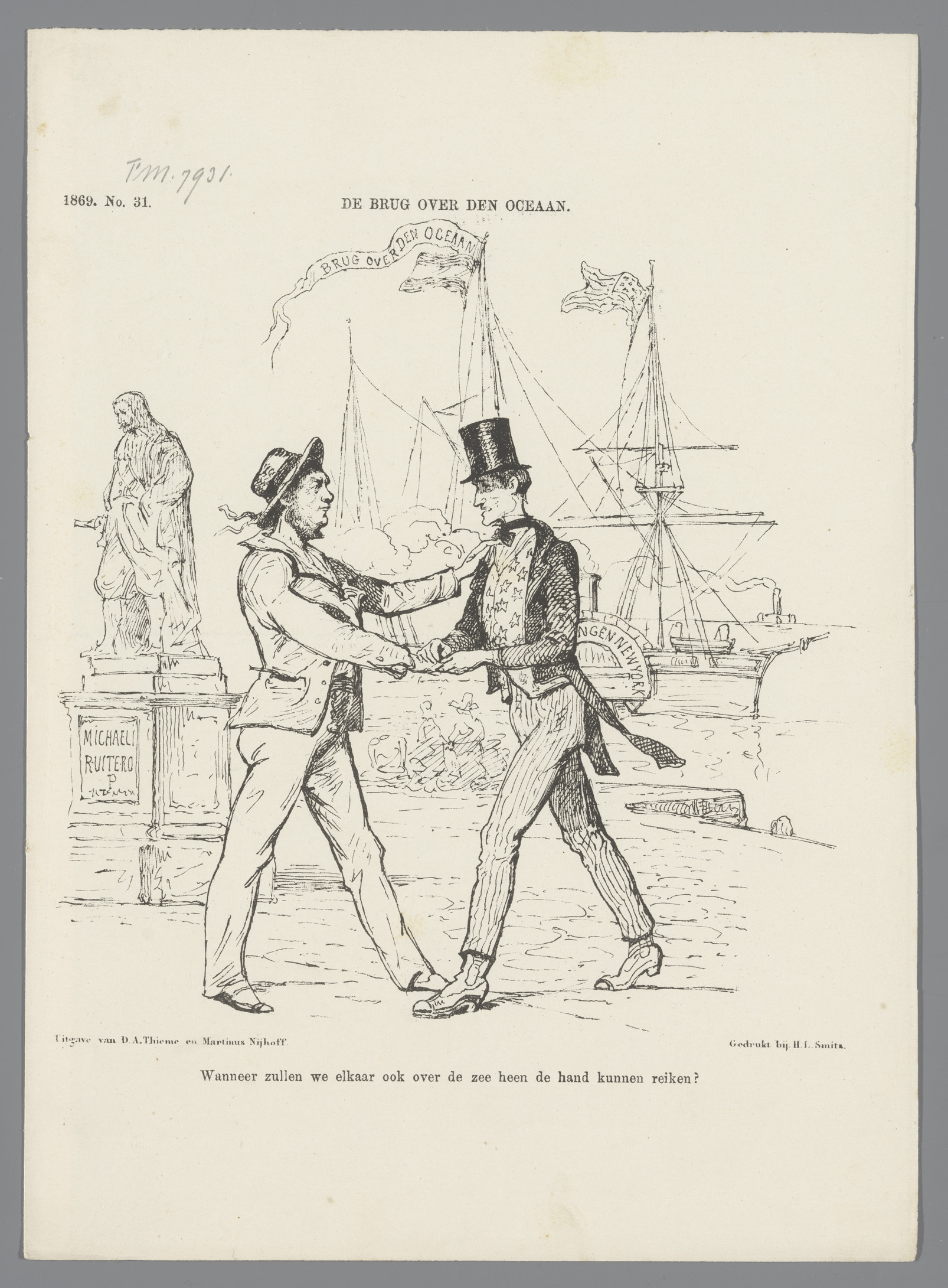 Spotprent over de voorgenomen stoomvaart verbinding ...