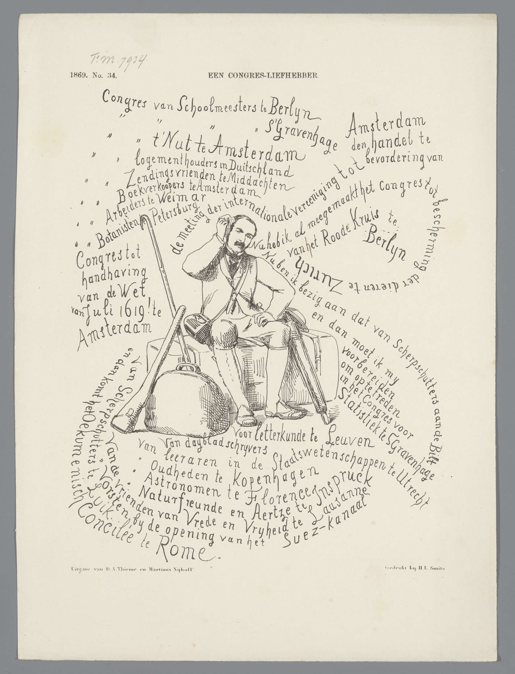 Spotprent op het overvloed aan congressen, 1869