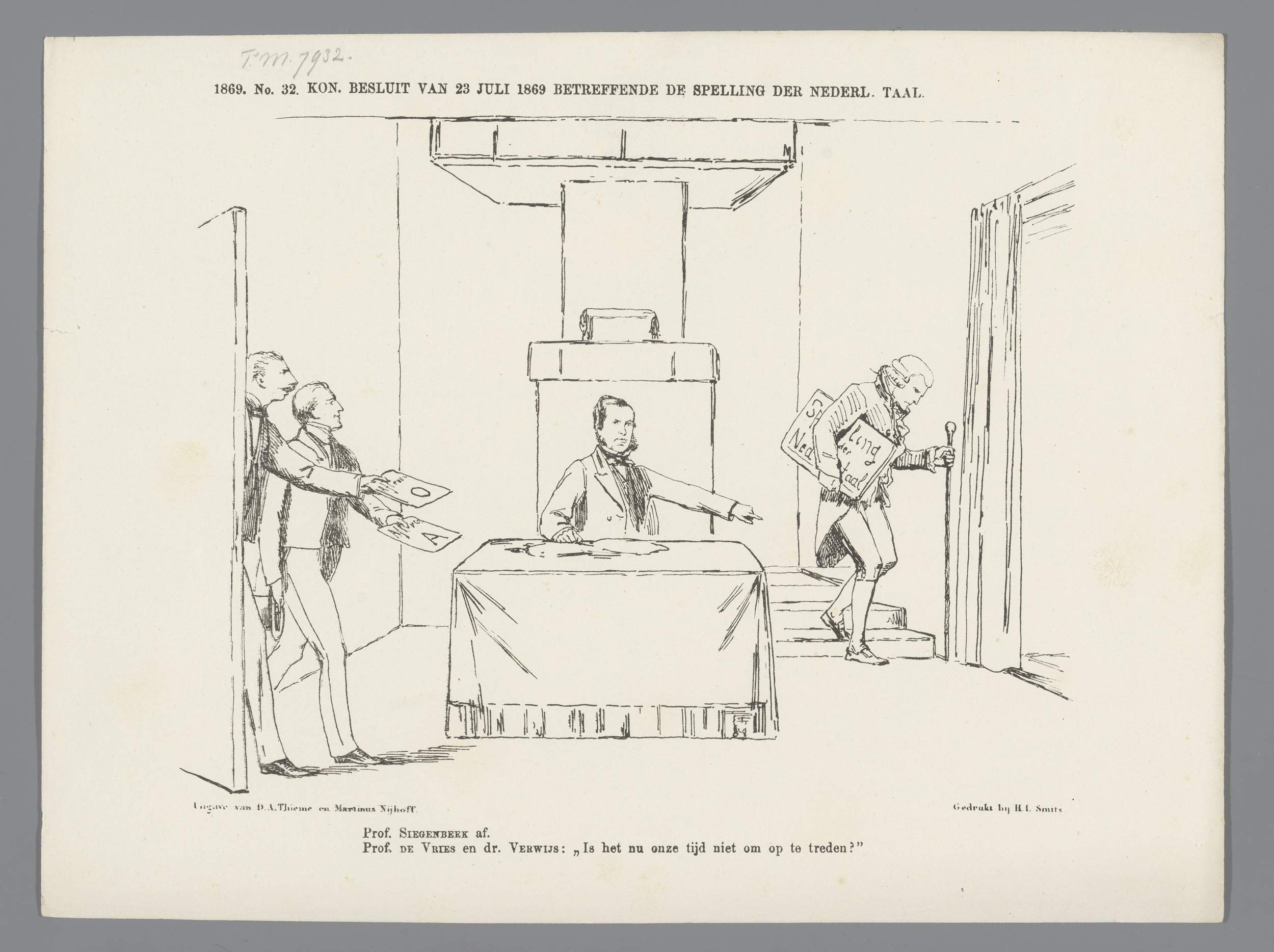Spotprent over de oude spelling, 1869