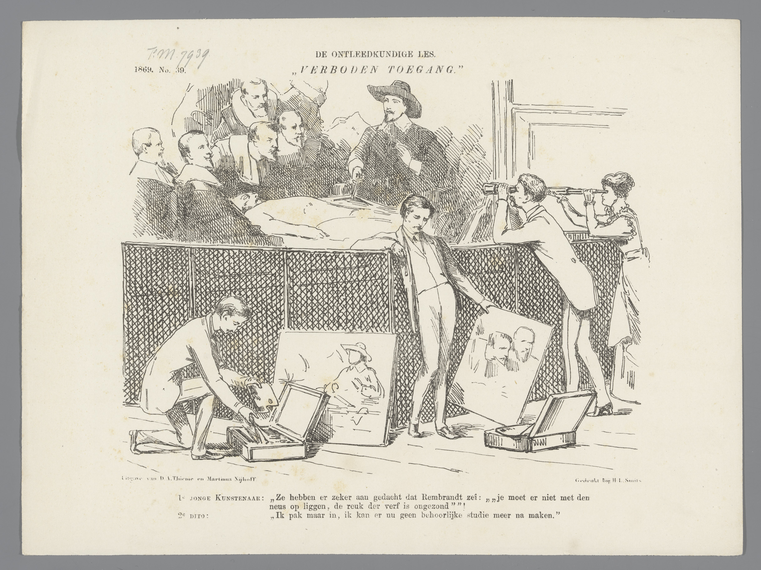 Spotprent op de omheining om Rembrandts anatomische ...