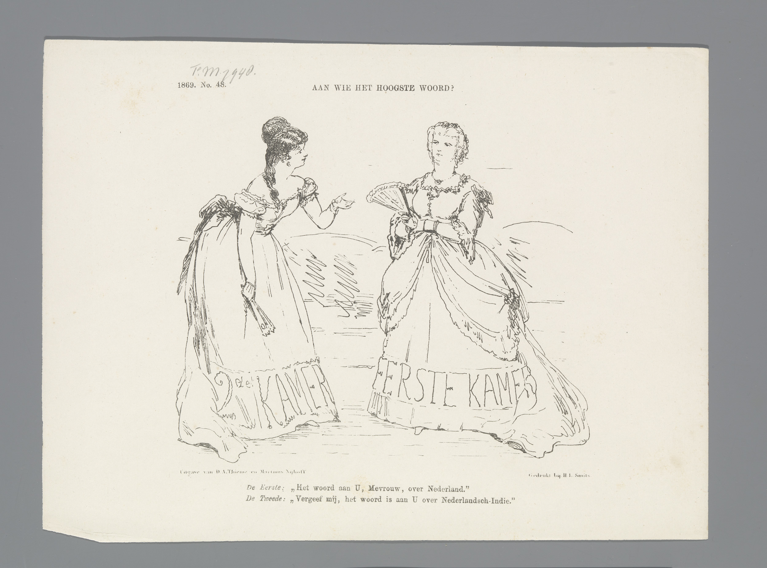 Spotprent met twee Indische dames in Den Haag, 1869