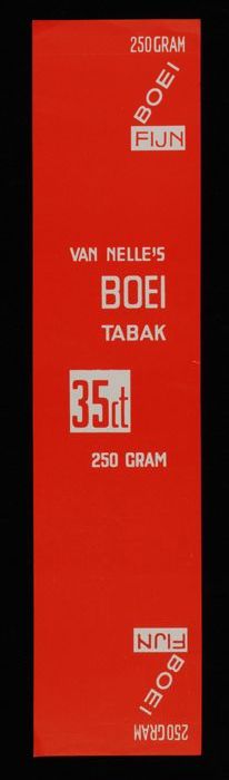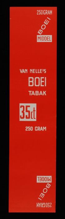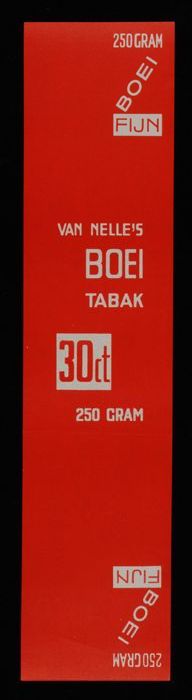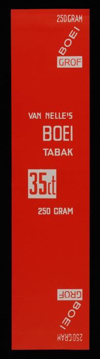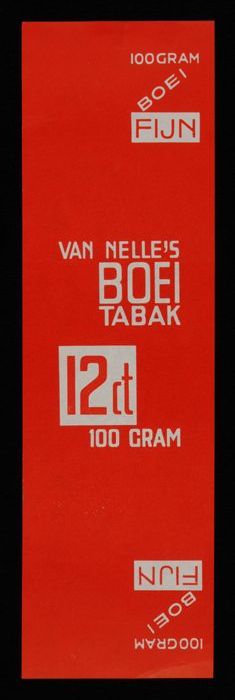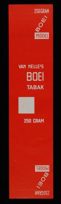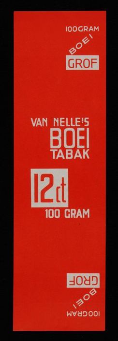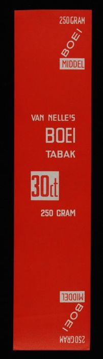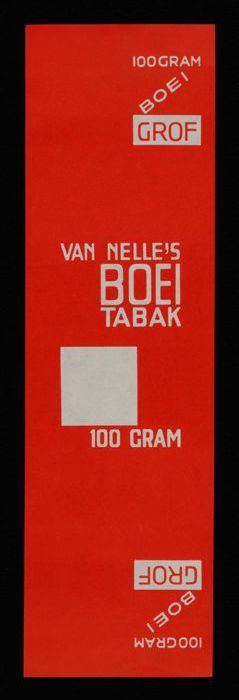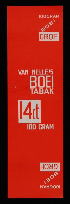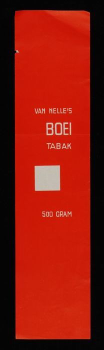 Label, rood, VAN NELLE´S BOEI TABAK, 100 GRAM, MIDDEL