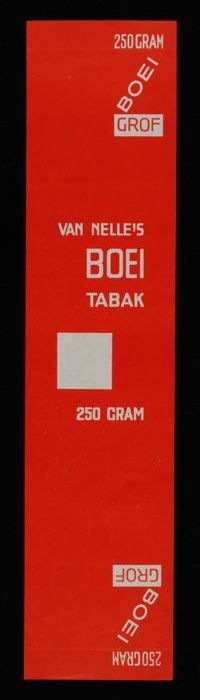 Label, rood, VAN NELLE´S BOEI TABAK, 250 GRAM