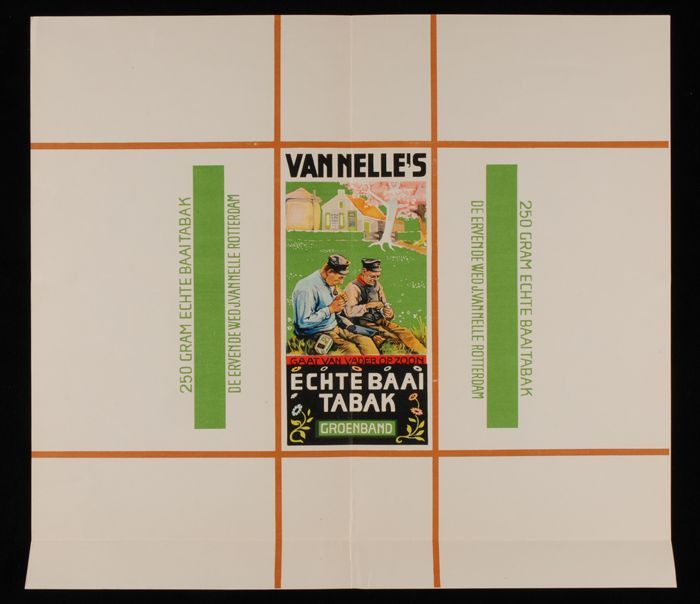 Twee labels, rood, VAN NELLE´S BOEI TABAK, FIJN, 50 ...
