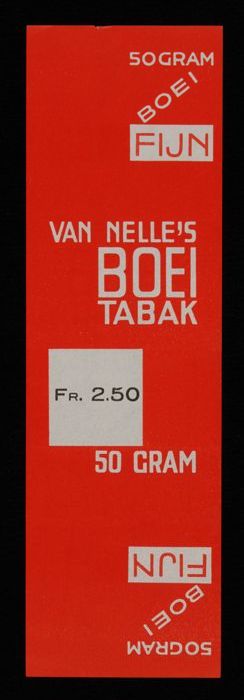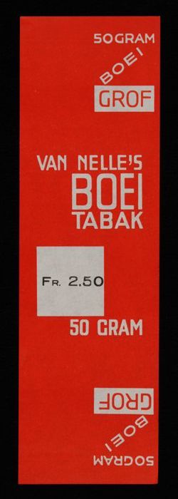 Label, rood, VAN NELLE´S BOEI TABAK, Fr. 2.50, 50 GRAM