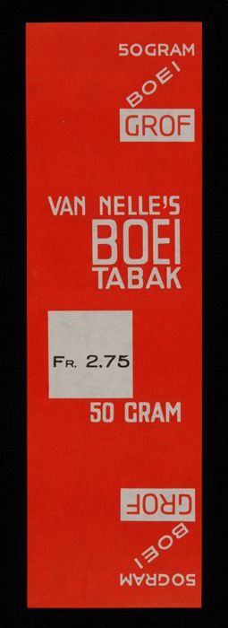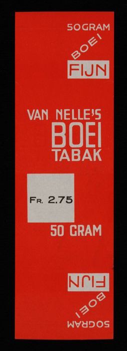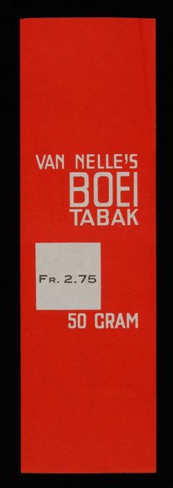 Label, rood, VAN NELLE´S BOEI TABAK, Fr. 2.75, 50 GR...