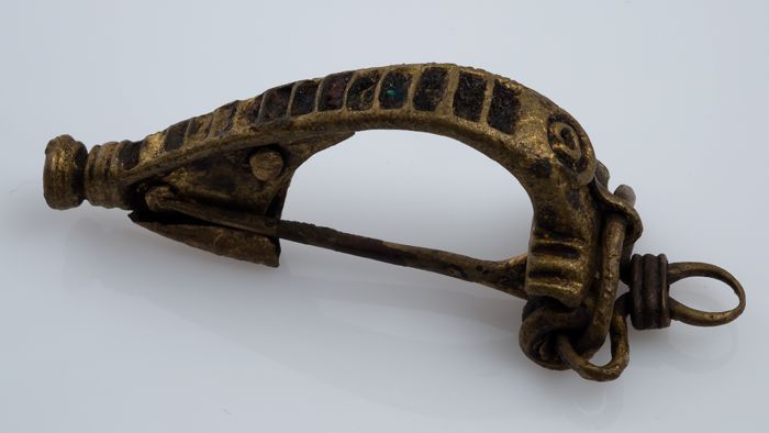 Fibula of mantelspeld, geheel compleet, rug met inge...