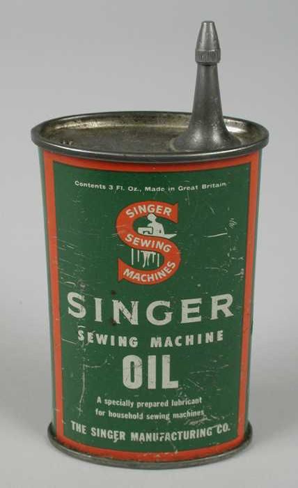 Donkergroene ovale metalen bus voor naaimachineolie ...