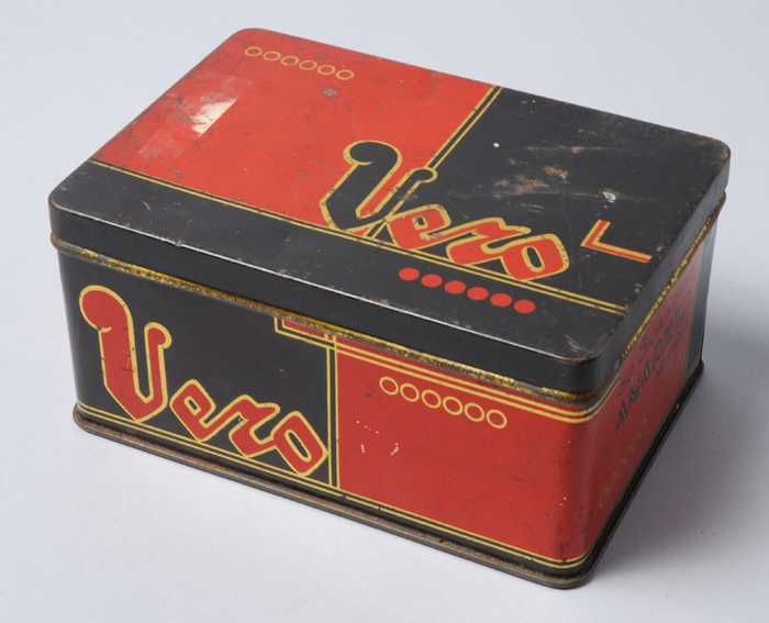 Rechthoekig blik met scharnierend deksel, Van Rossem...