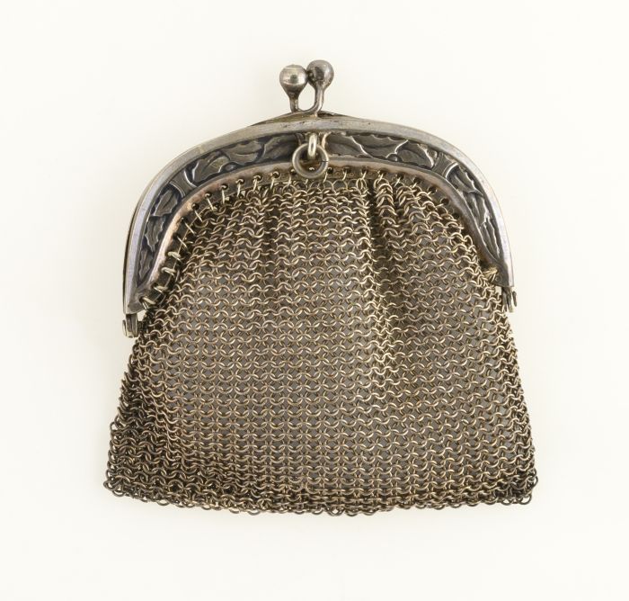 Kleine beurs of portemonnee van zilveren ringetjes e...