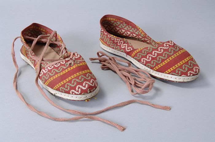 Rood linnen espadrilles geborduurd met geel, wit en ...