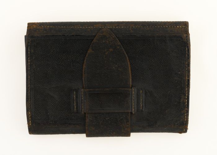 Zwart leren portefeuille met omslag, riem en lus, ge...