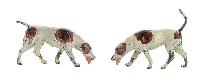 Tinnen figuren uit serie van 48 boerderijdieren: twe...