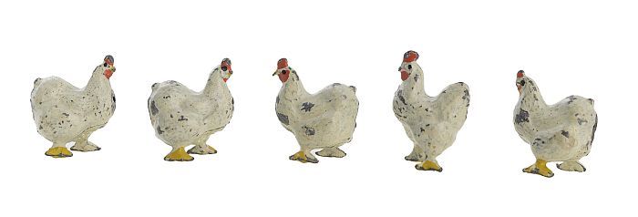 Tinnen figuren uit serie van 48 boerderijdieren: vij...