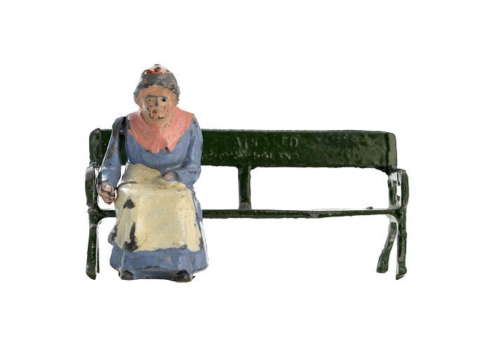 Tinnen figuren uit serie van 48 boerderijfiguren: vr...
