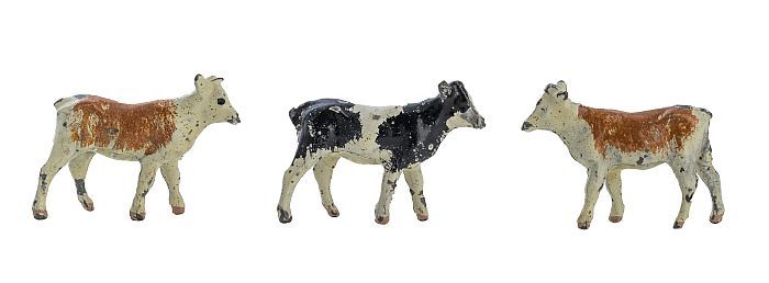 Tinnen figuren uit serie van 48 boerderijdieren: dri...