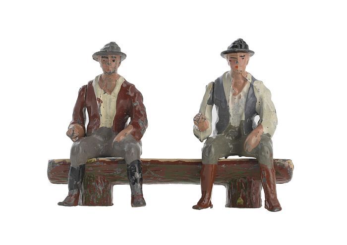 Tinnen figuur uit serie van 48 boerderijfiguren: twe...