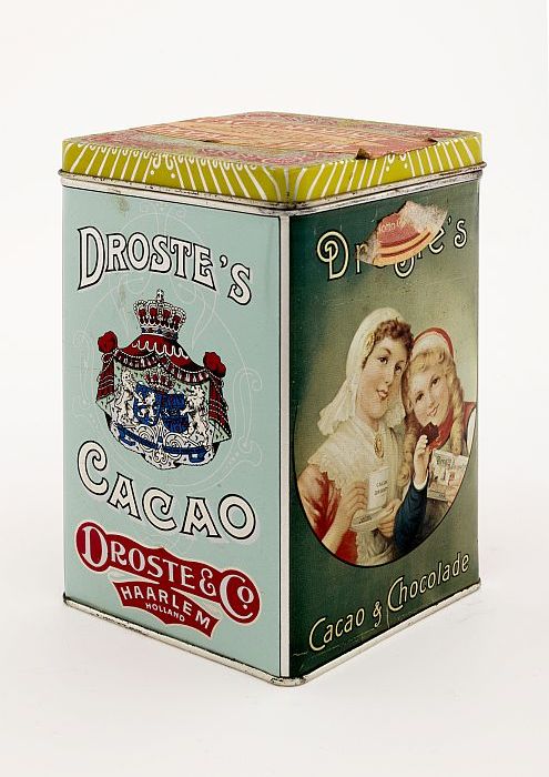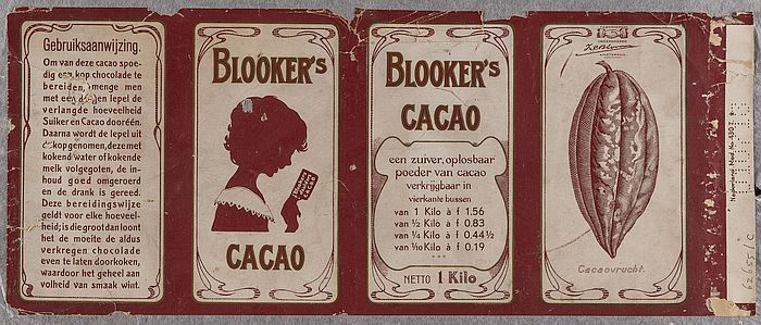 Wikkel van rood rechthoekig cacaoblik "Blooker's Cacao"